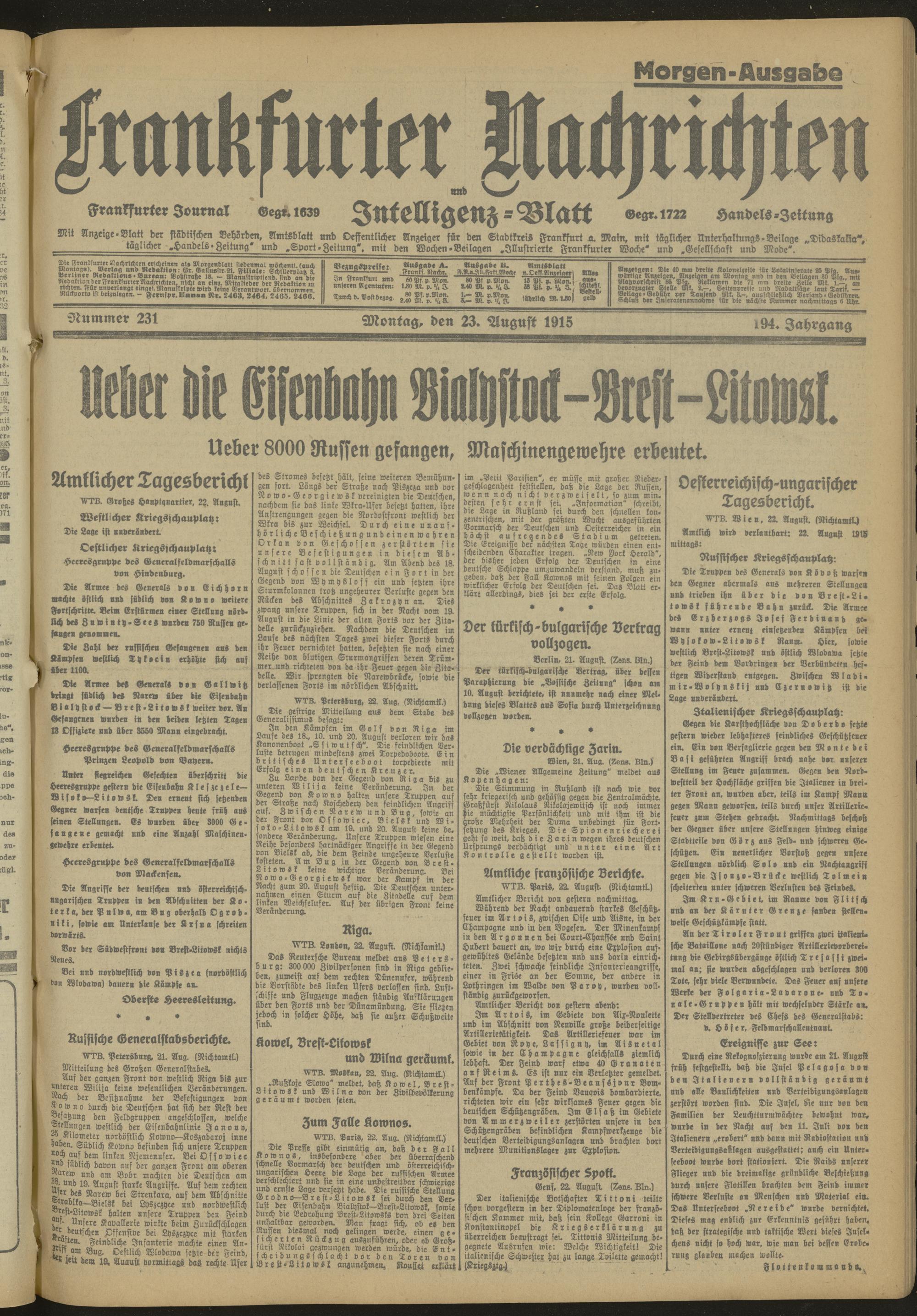 23.08.1915 Morgen-Ausgabe = Nr. 231
