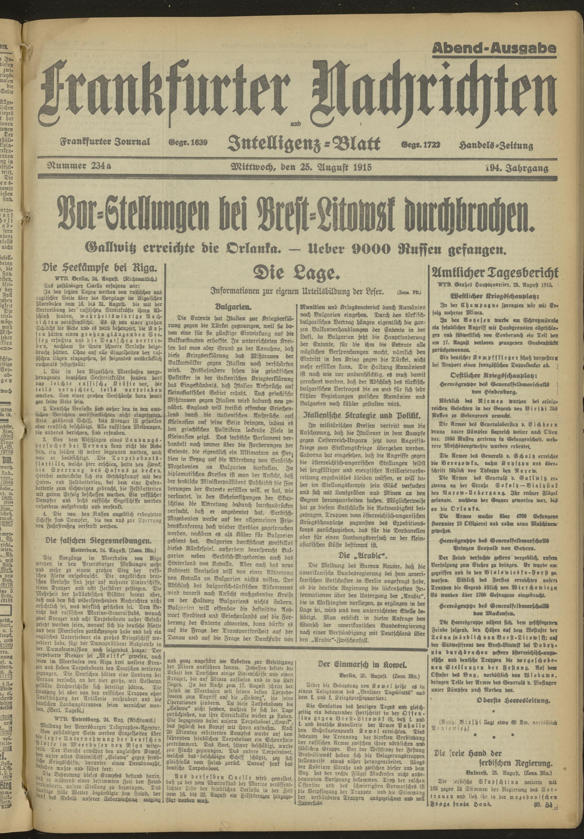 25.08.1915 Abend-Ausgabe = Nr. 234 a