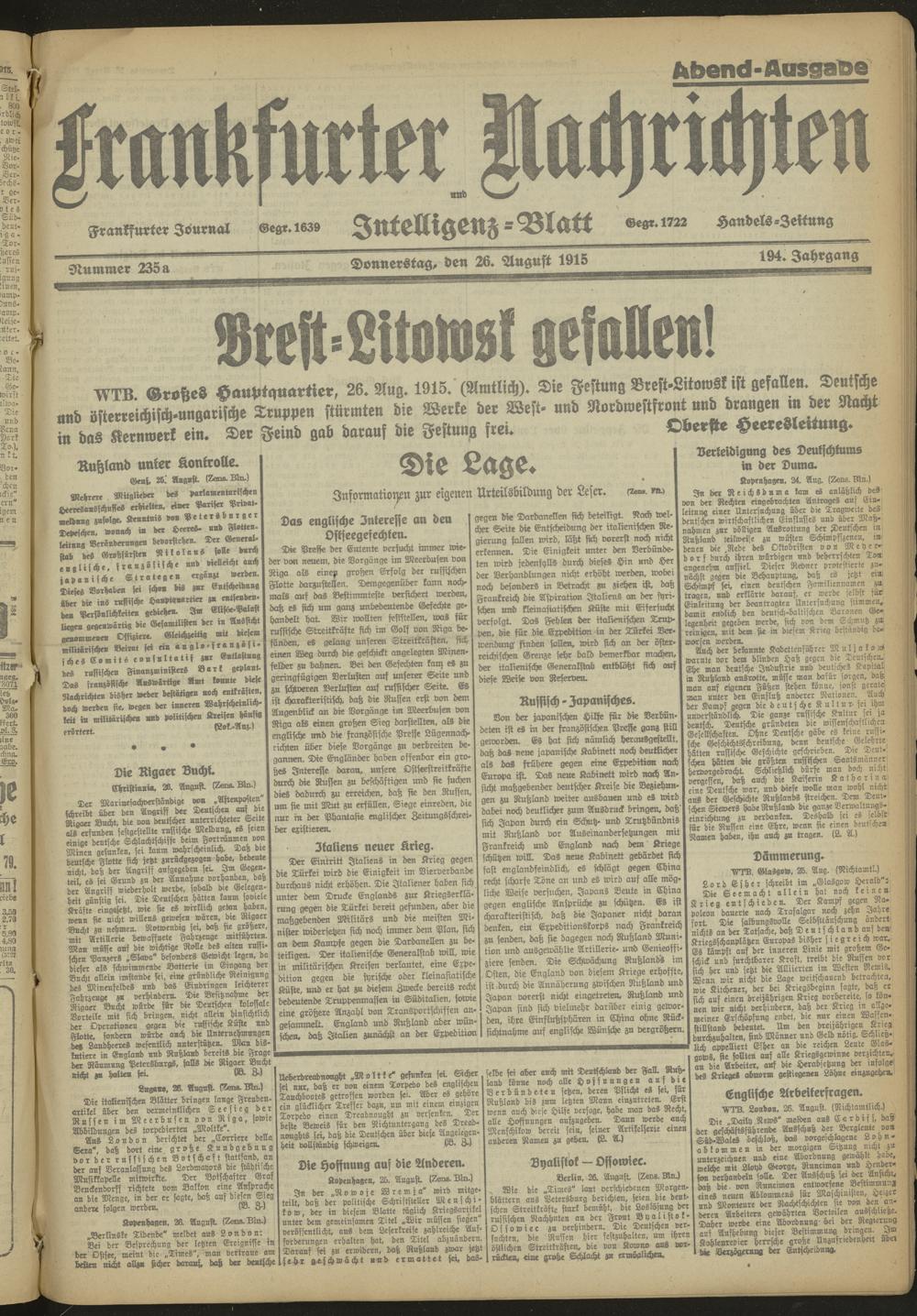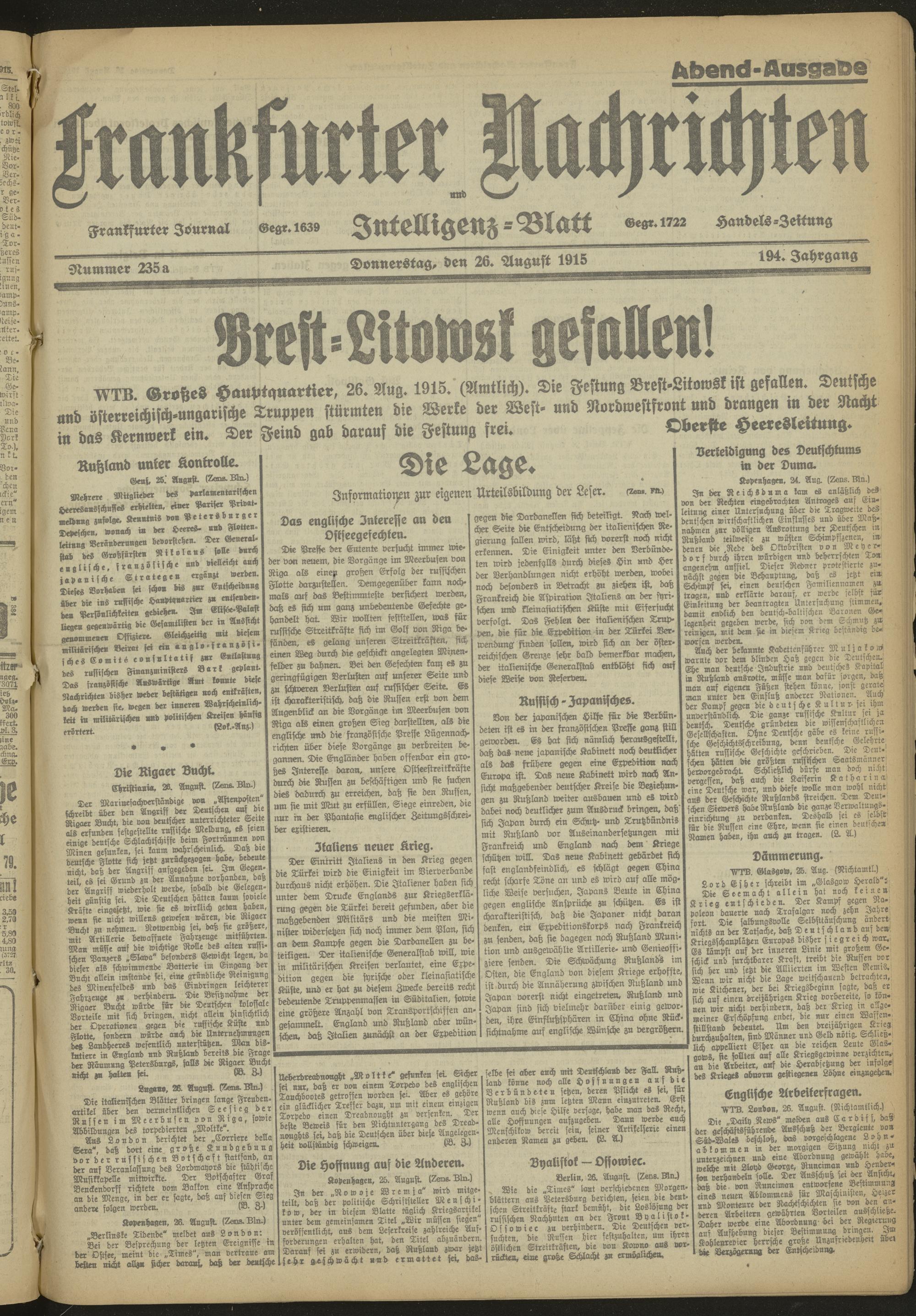 26.08.1915 Abend-Ausgabe = Nr. 235 a