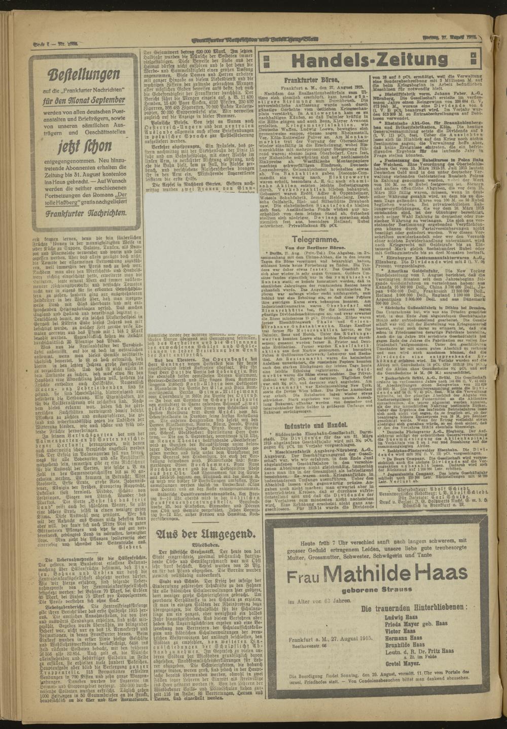 Frankfurter Nachrichten und Intelligenzblatt. 1914-1918