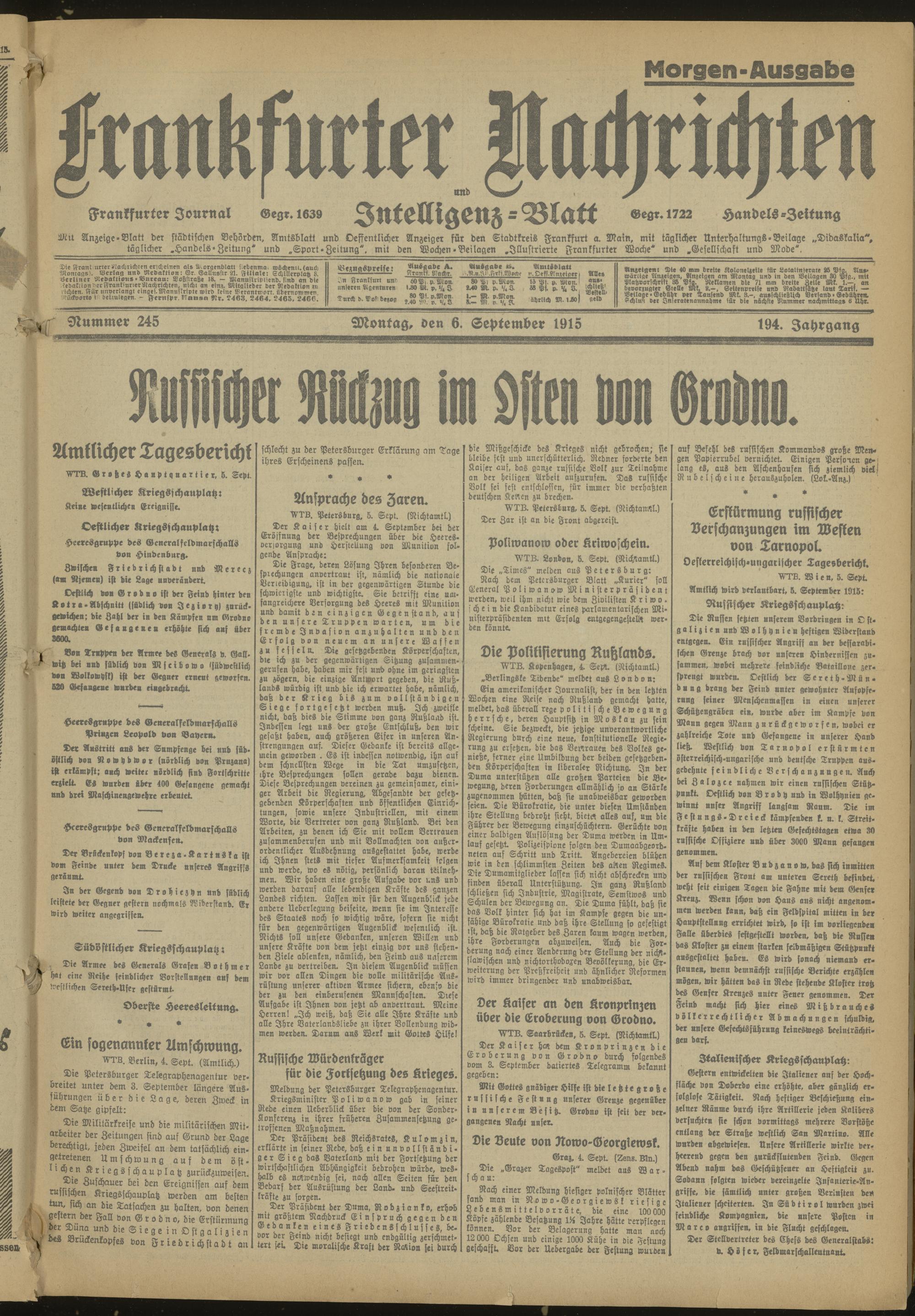 06.09.1915 Morgen-Ausgabe = Nr. 245