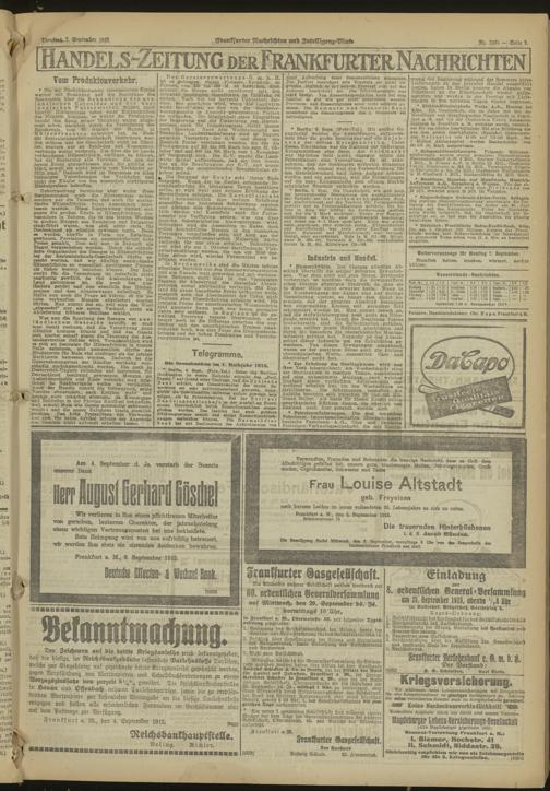 Frankfurter Nachrichten und Intelligenzblatt. 1914-1918