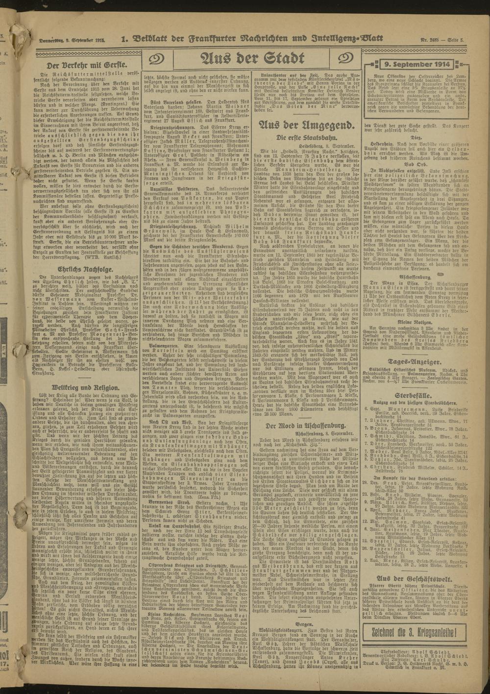 Frankfurter Nachrichten und Intelligenzblatt. 1914-1918