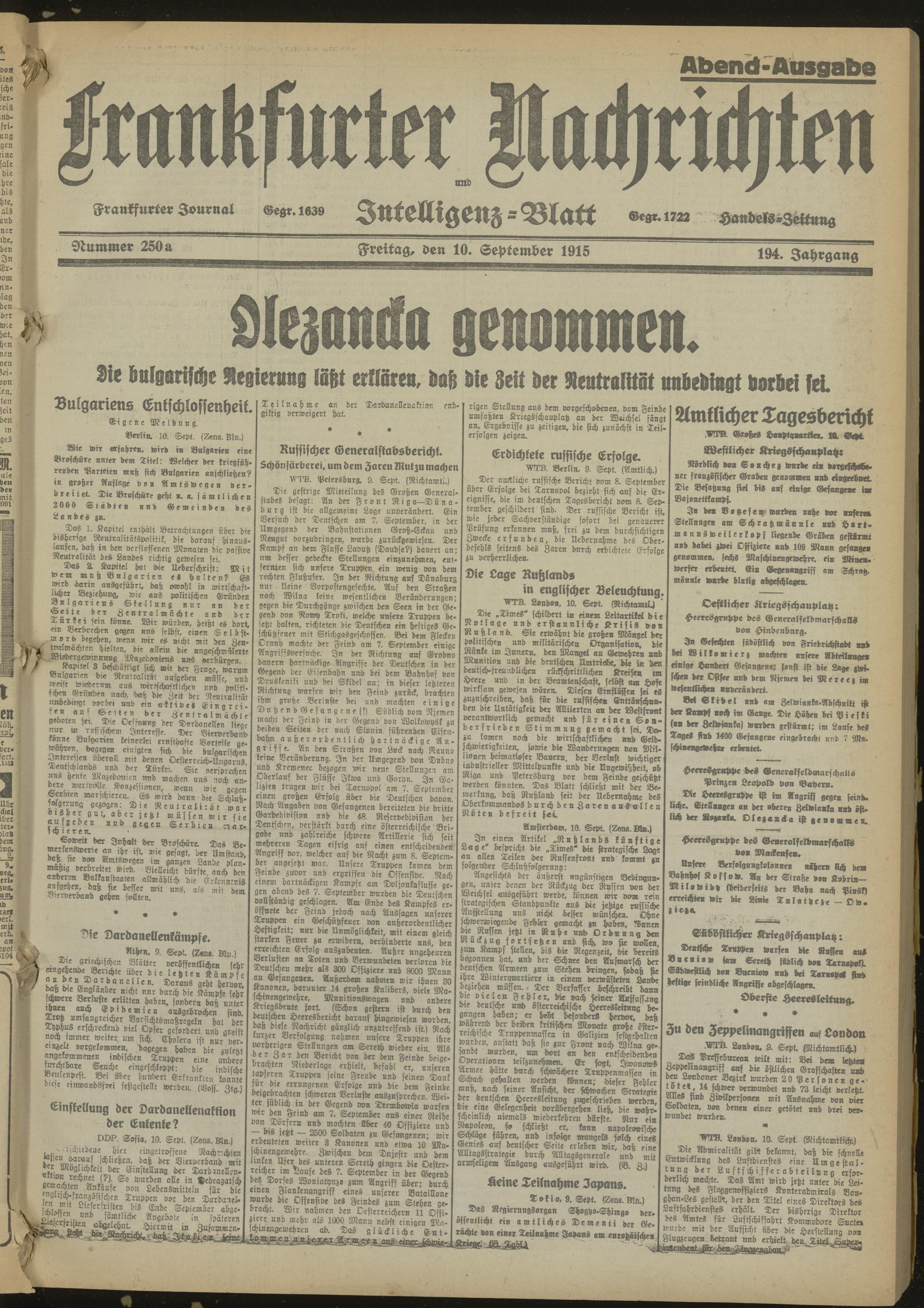 10.09.1915 Abend-Ausgabe = Nr. 250 a