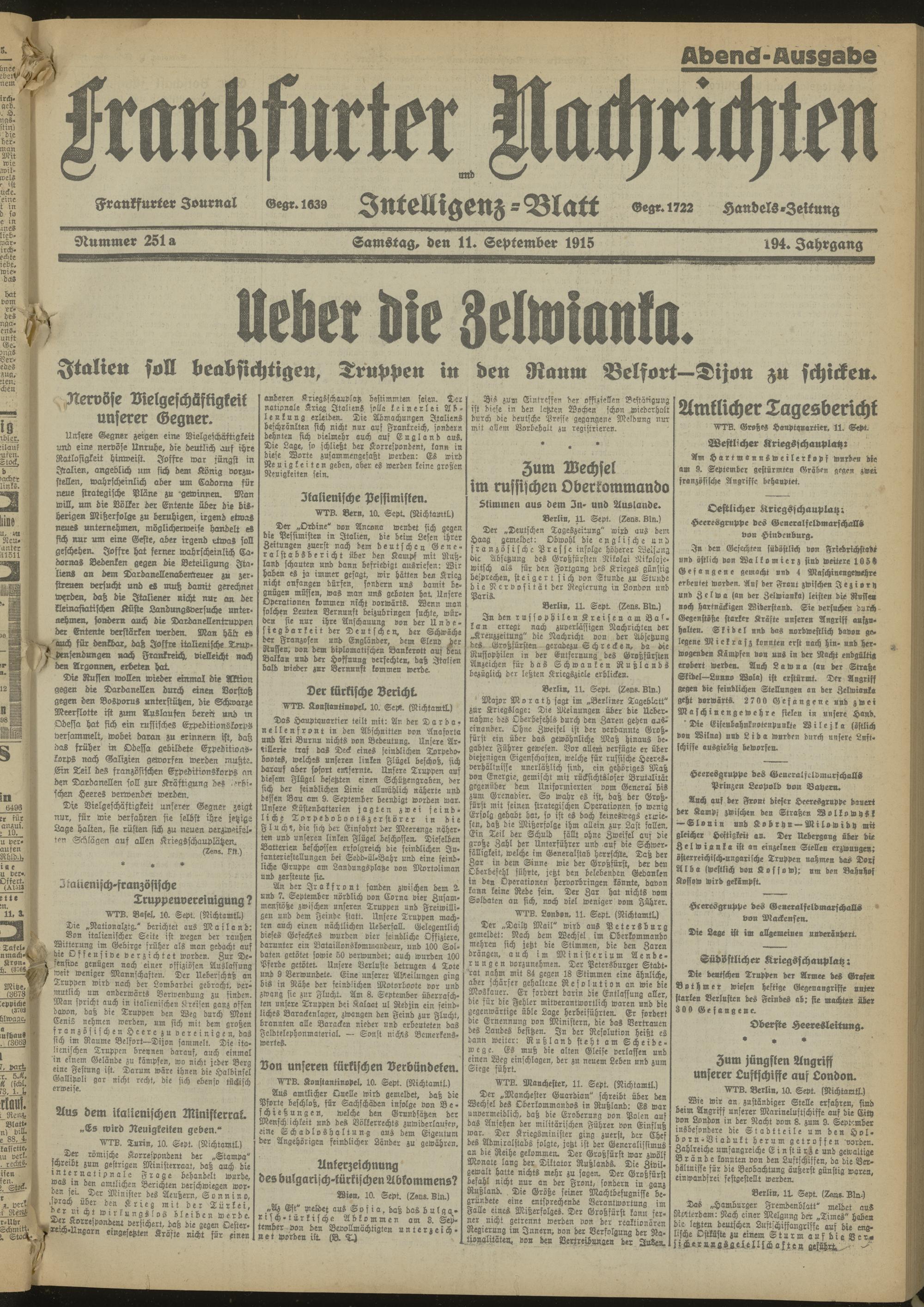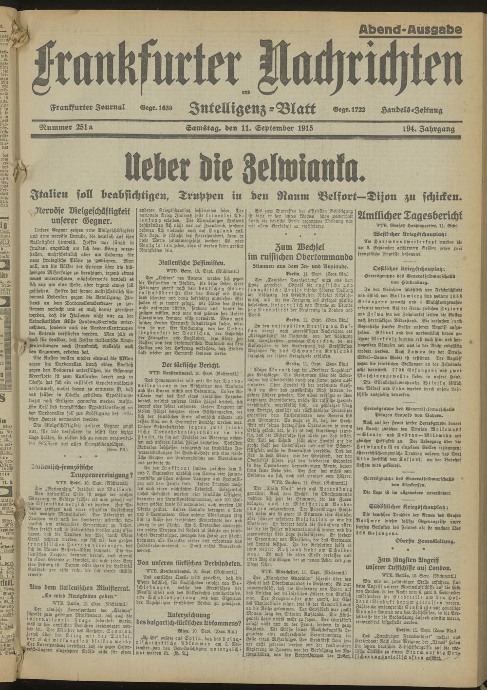 11.09.1915 Abend-Ausgabe = Nr. 251 a