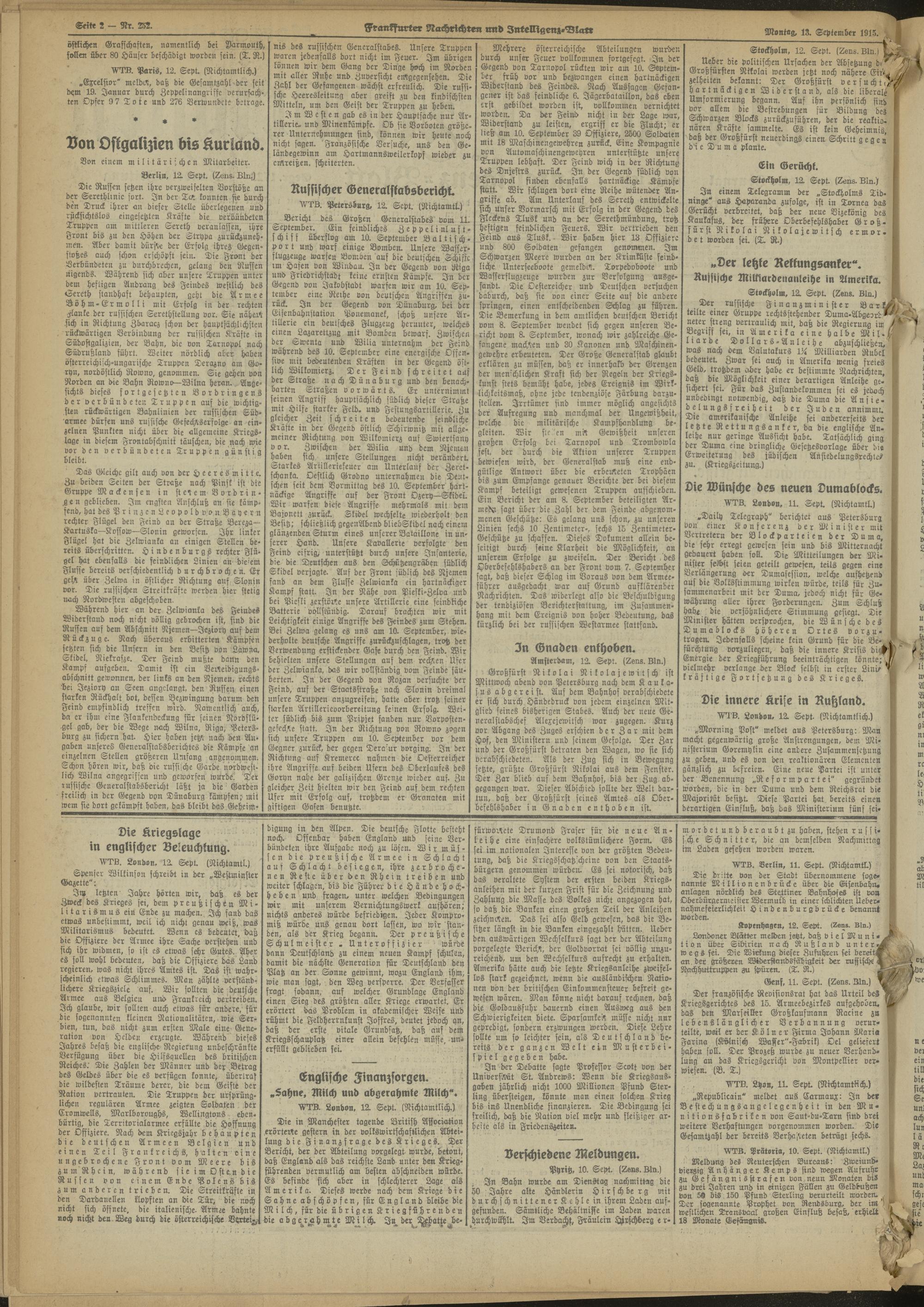13.09.1915 Morgen-Ausgabe = Nr. 252