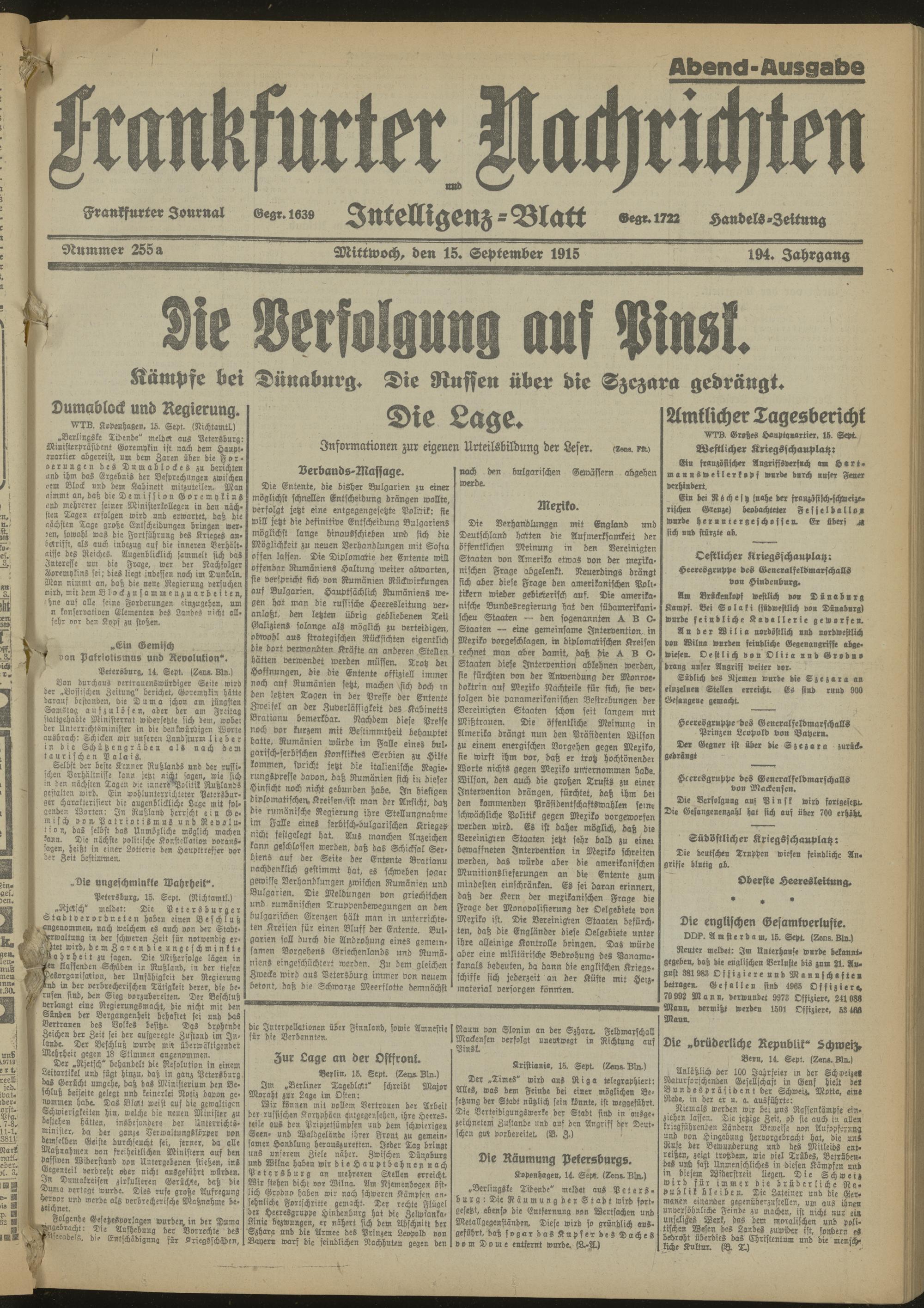 15.09.1915 Abend-Ausgabe = Nr. 255 a