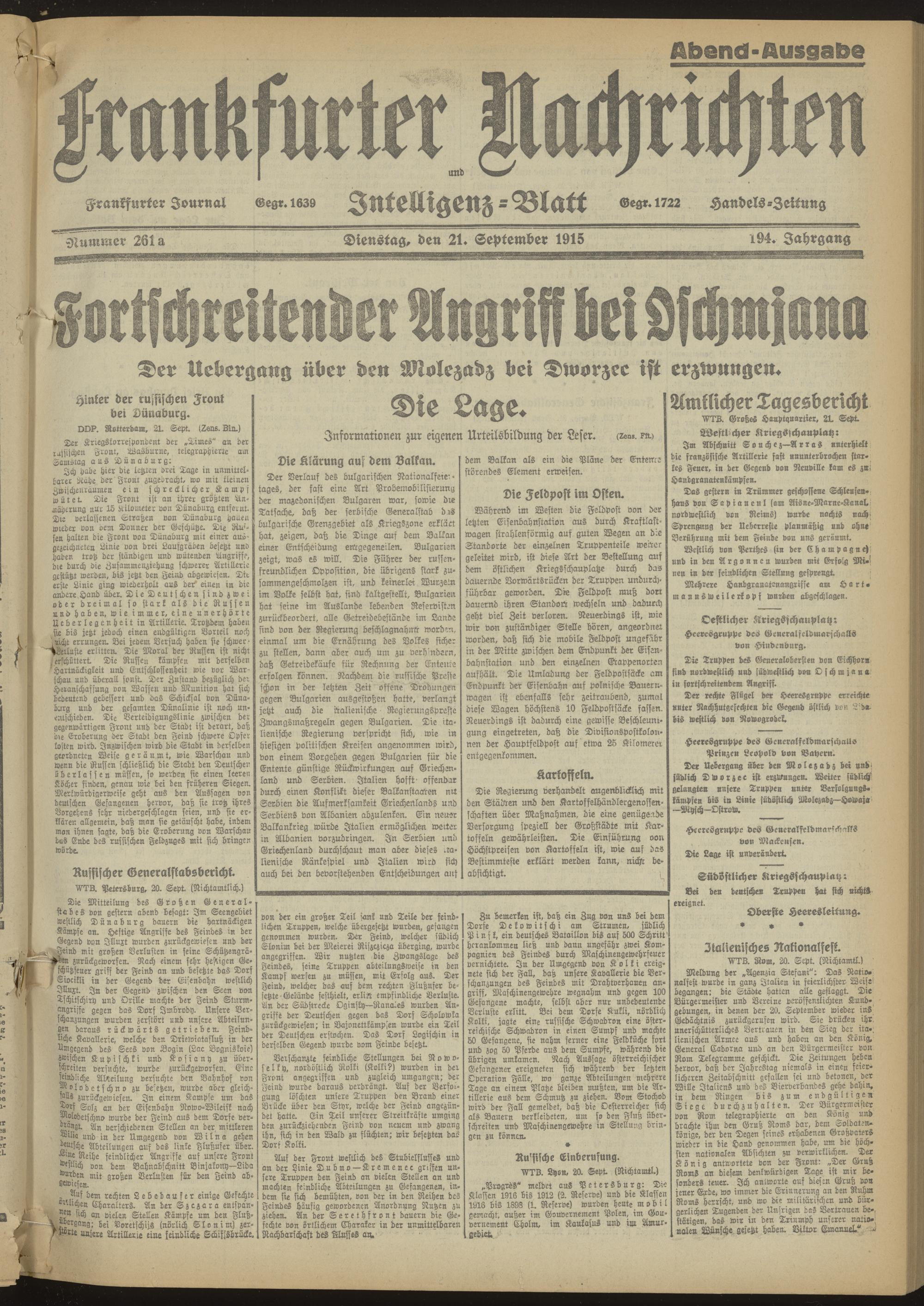 21.09.1915 Abend-Ausgabe = Nr. 261 a