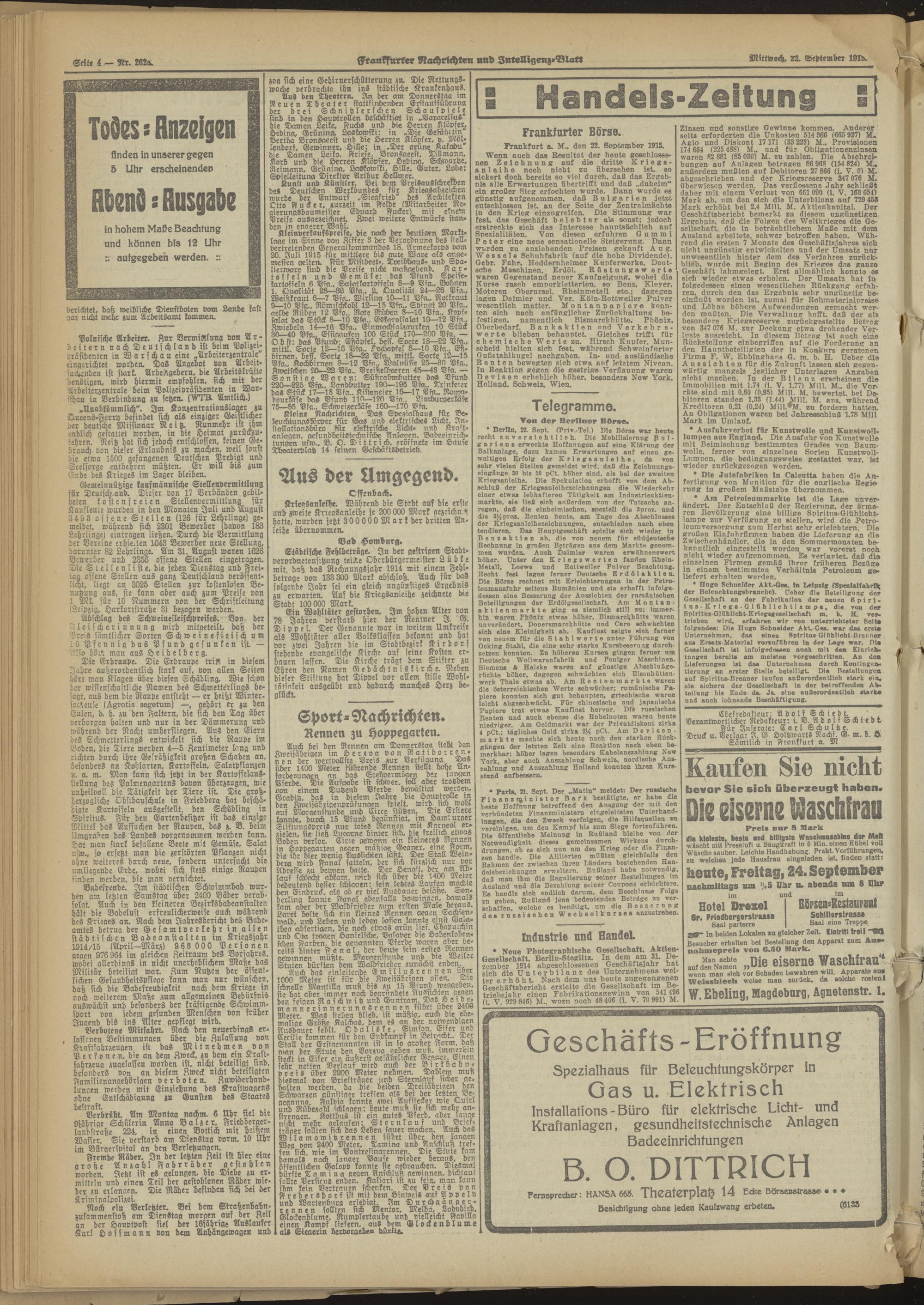 22.09.1915 Abend-Ausgabe = Nr. 262 a