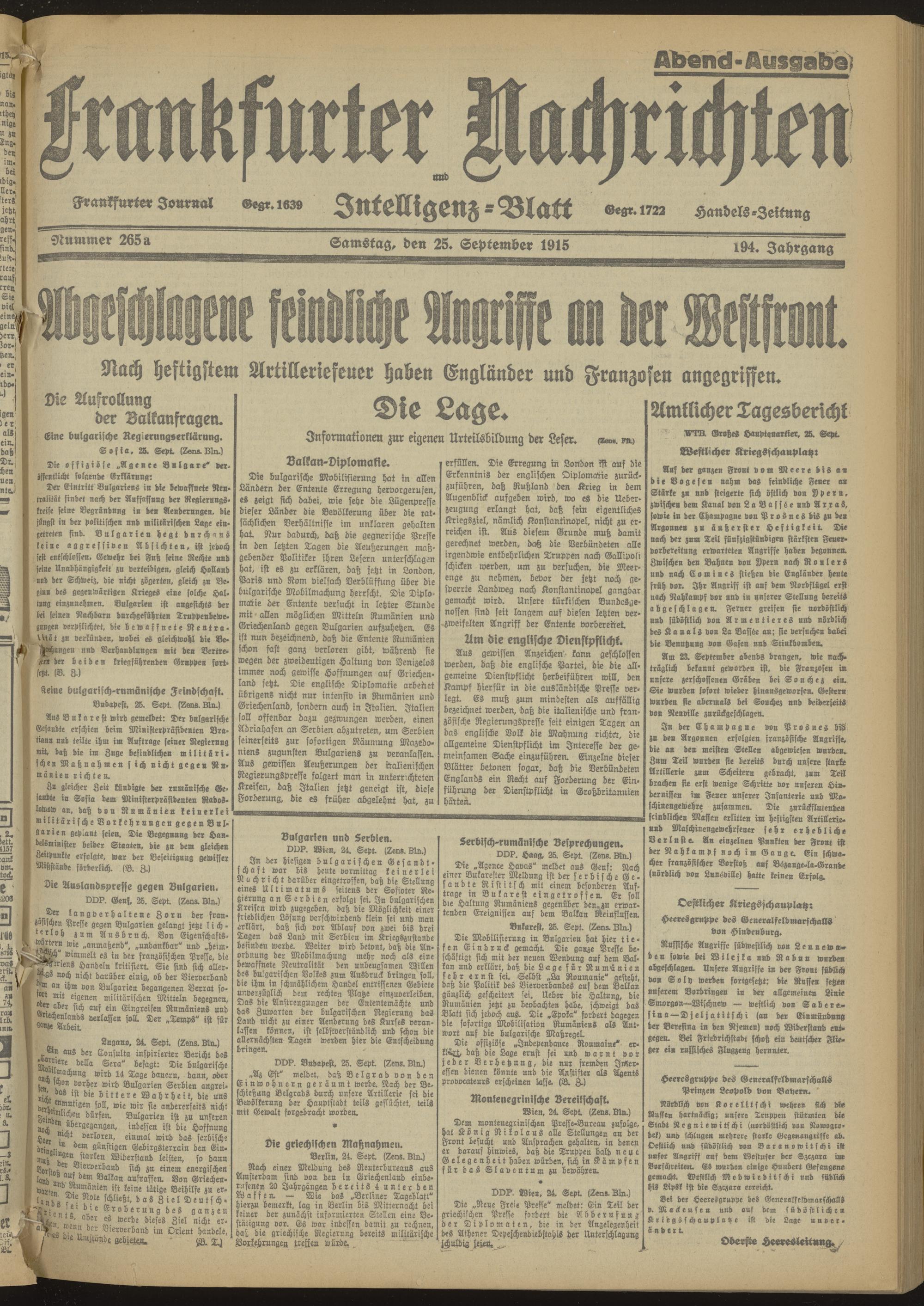 25.09.1915 Abend-Ausgabe = Nr. 265 a