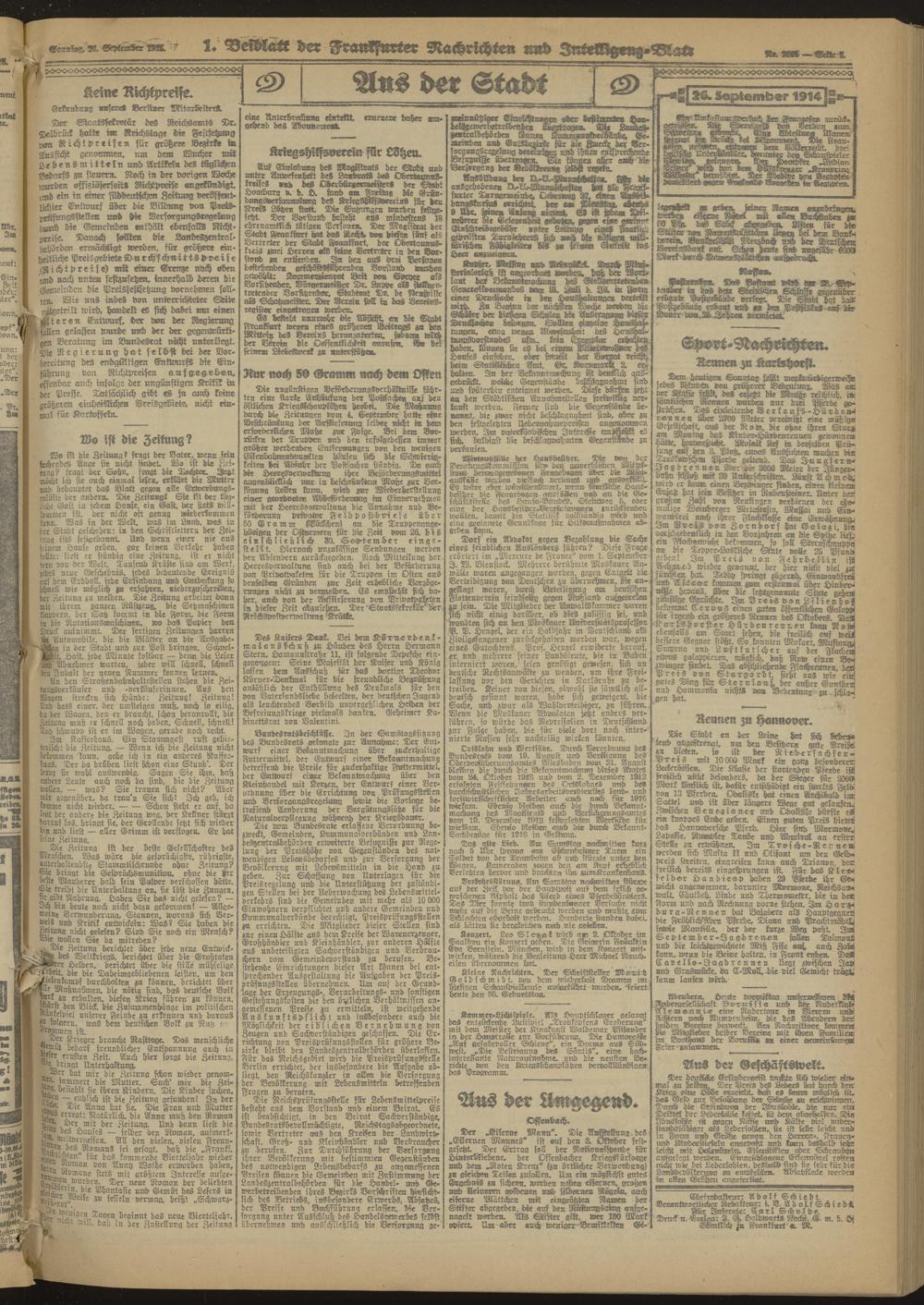 Frankfurter Nachrichten und Intelligenzblatt. 1914-1918