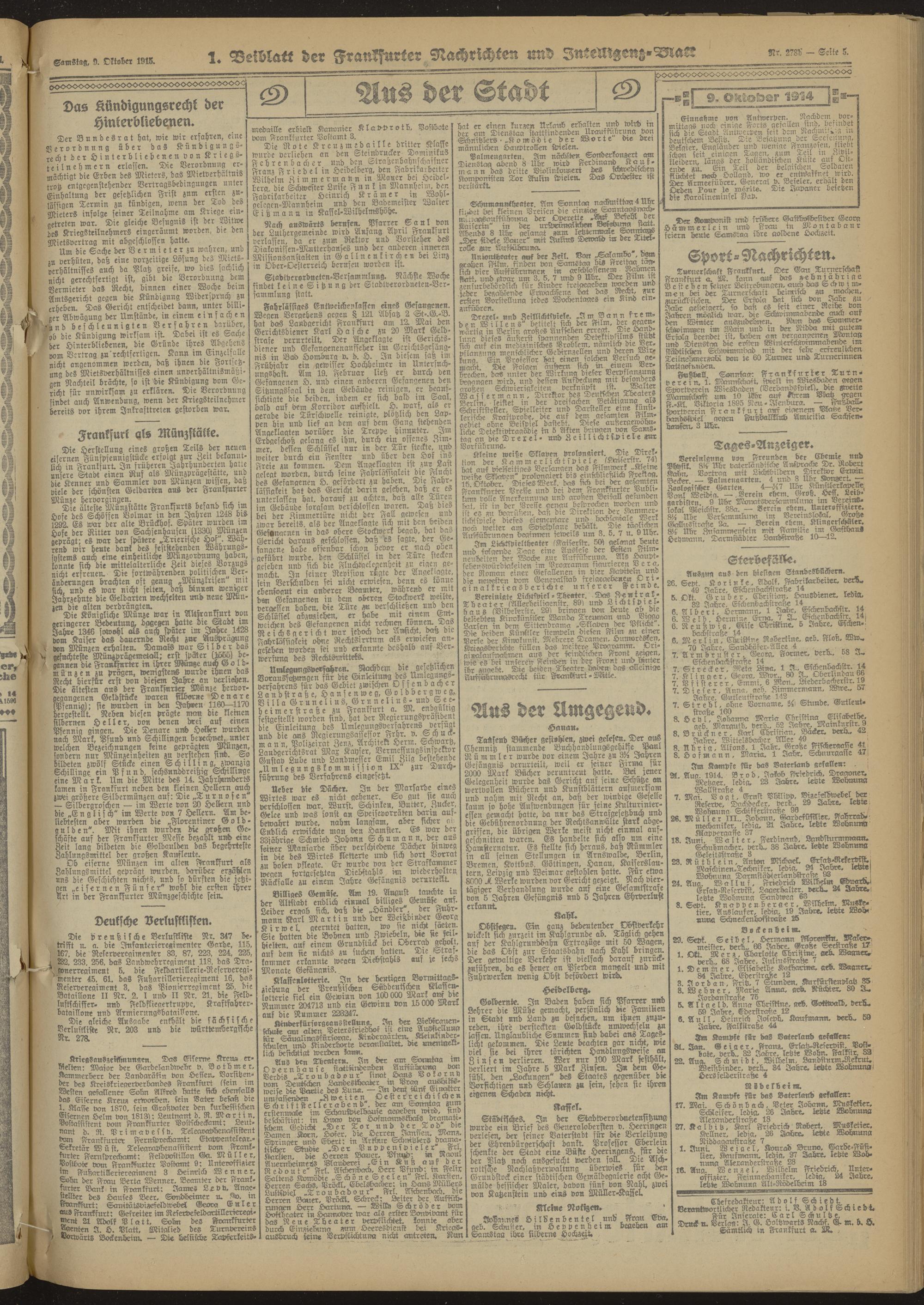 Frankfurter Nachrichten und Intelligenzblatt. 1914-1918