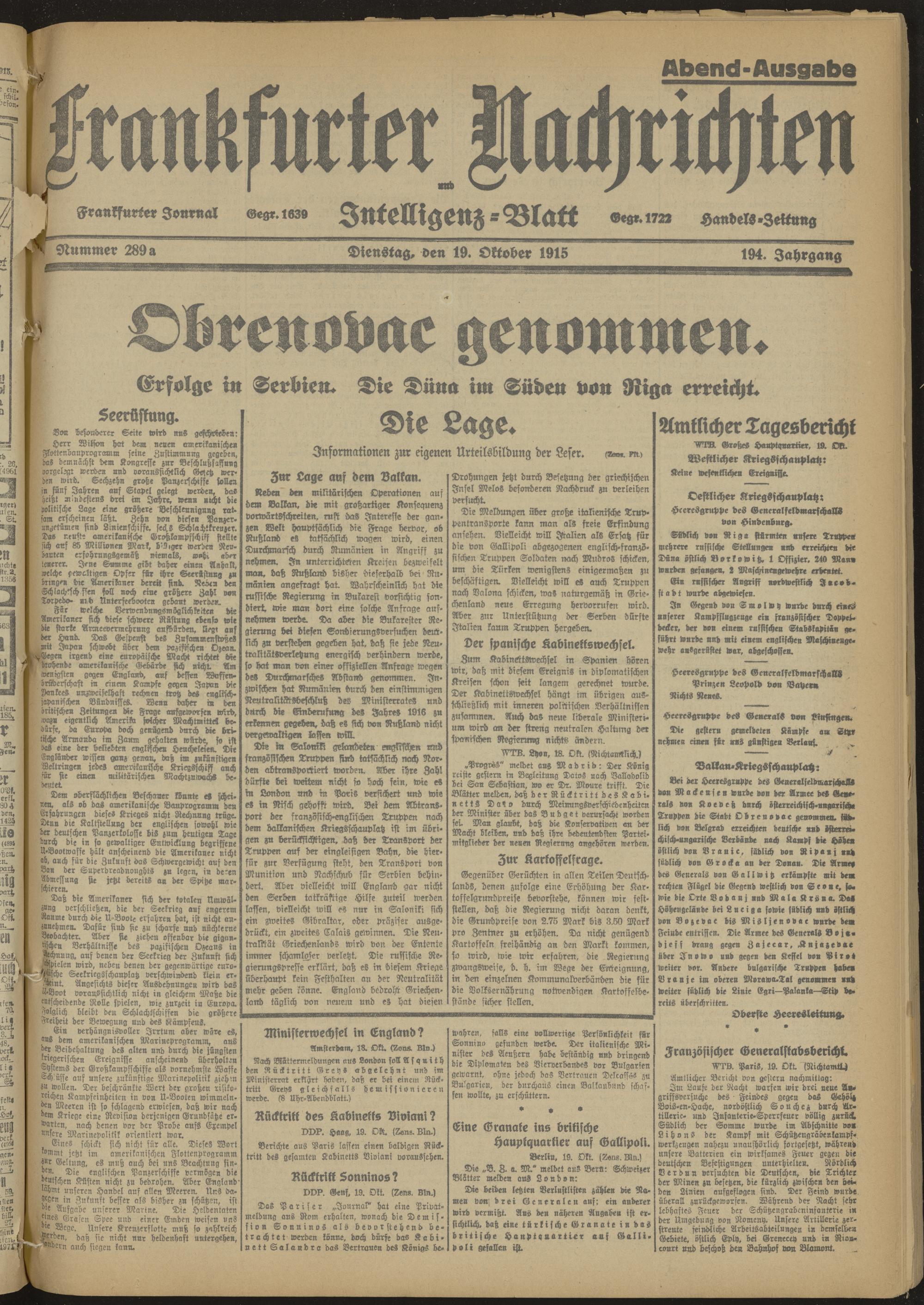 19.10.1915 Abend_Ausgabe = Nr. 289 a