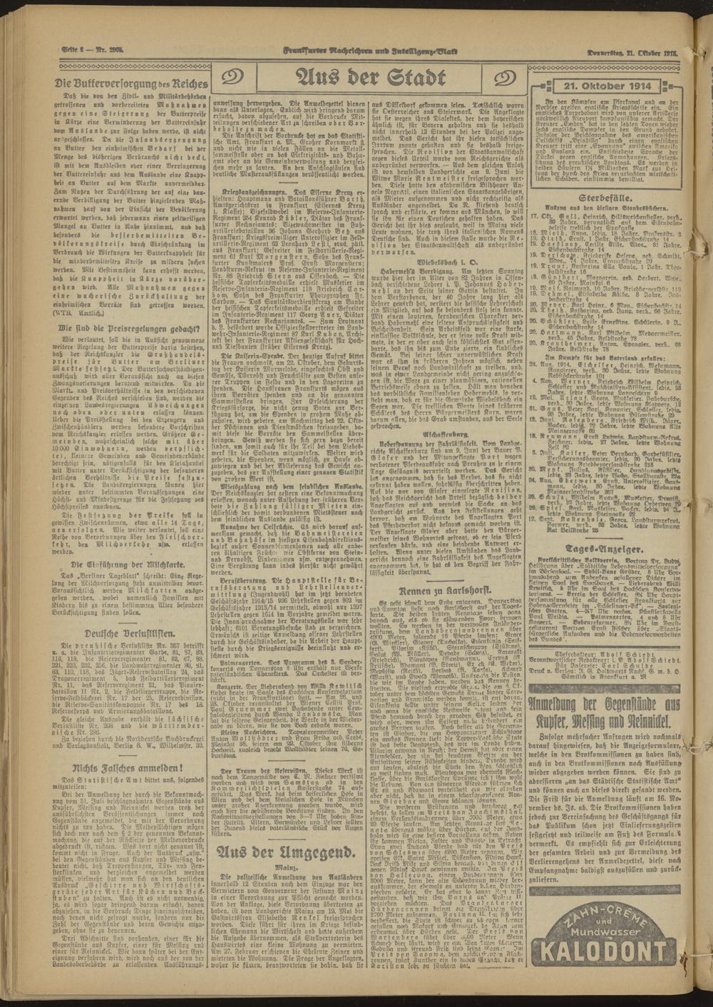 Frankfurter Nachrichten und Intelligenzblatt. 1914-1918
