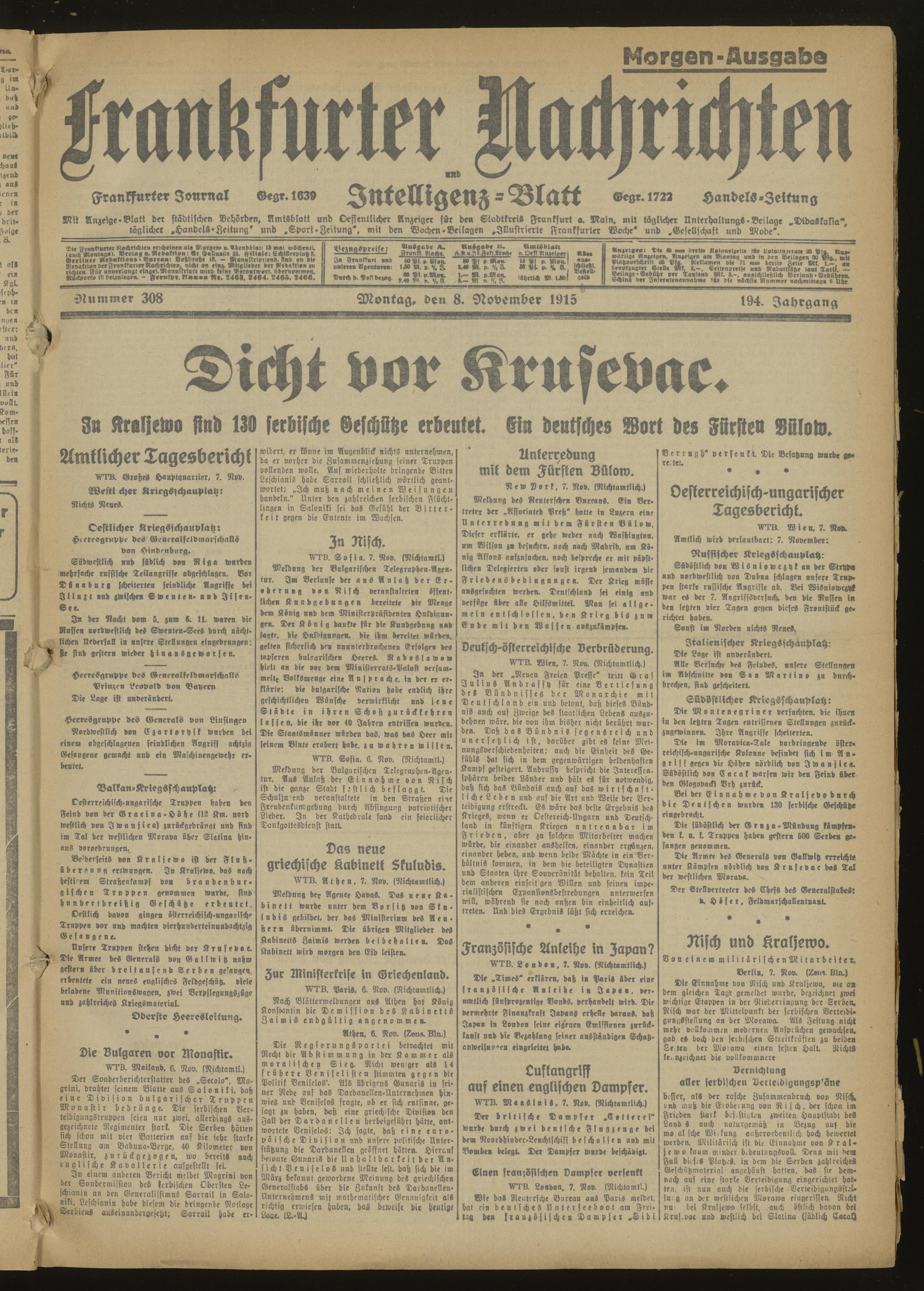 08.11.1915 Morgen-Ausgabe = Nr. 308