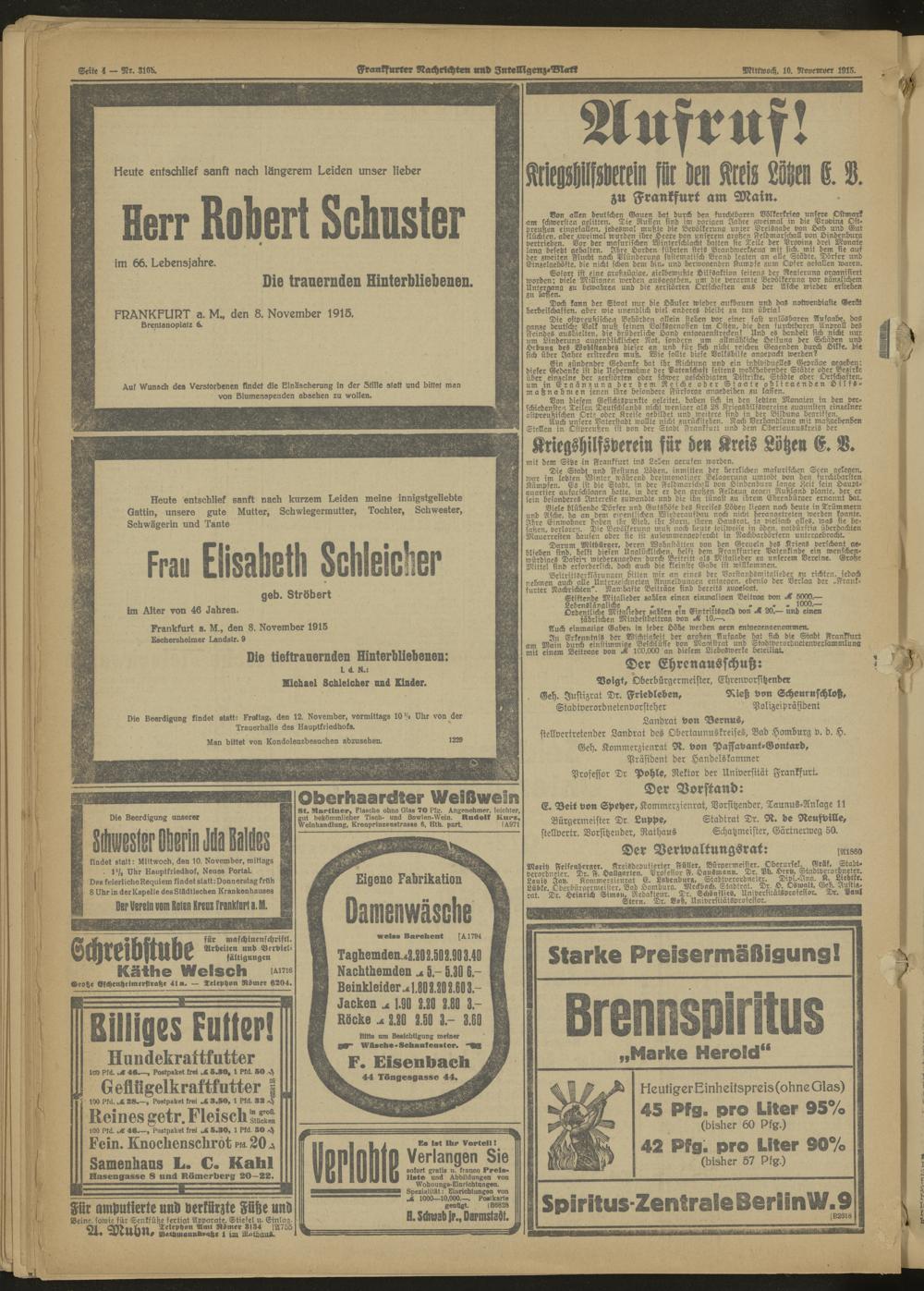 Frankfurter Nachrichten und Intelligenzblatt. 1914-1918