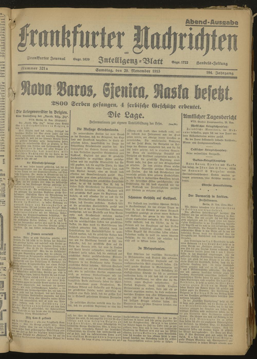 20.11.1915 Abend-Ausgabe = Nr. 321 a