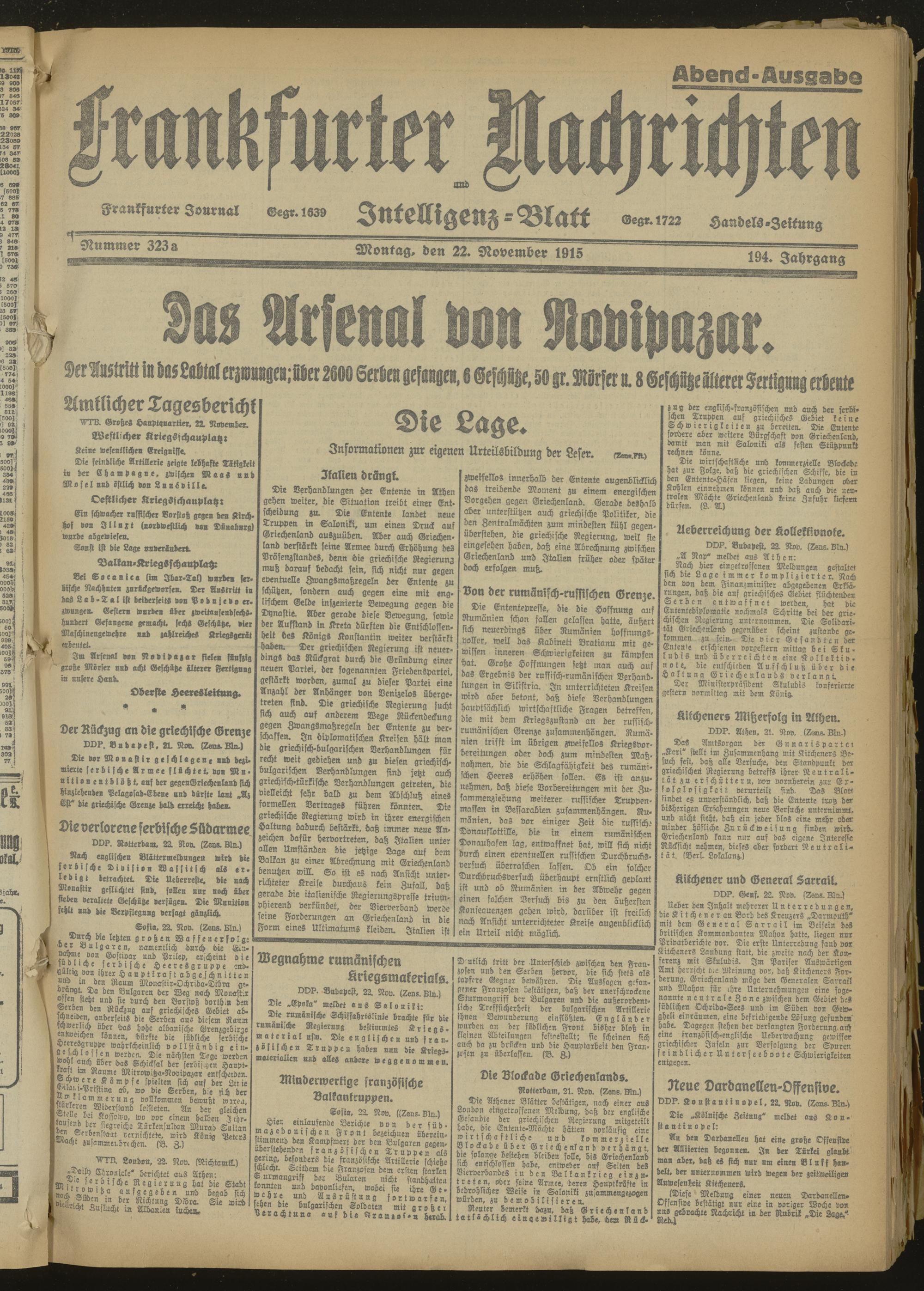 22.11.1915 Abend-Ausgabe = Nr. 323 a