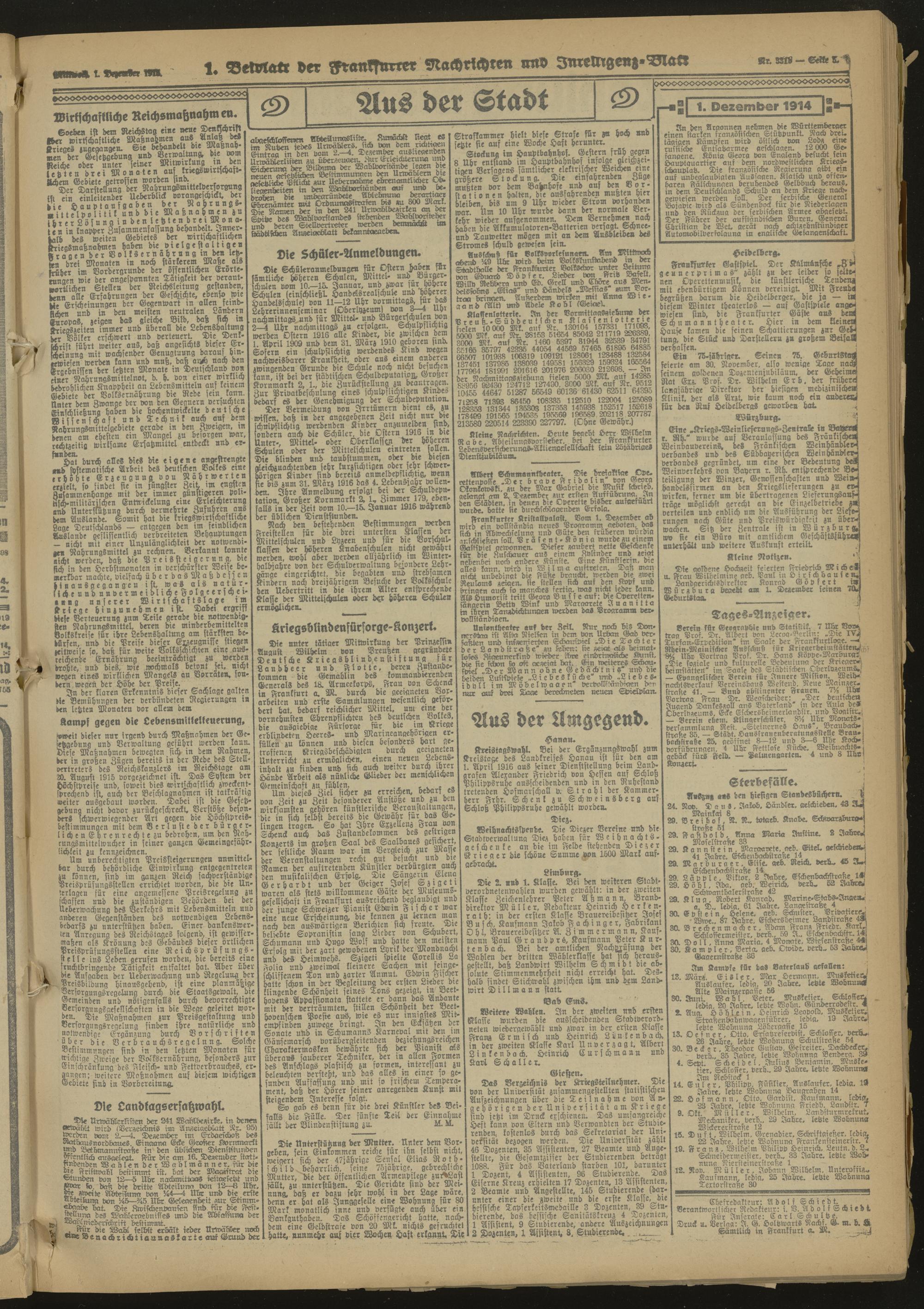 Frankfurter Nachrichten und Intelligenzblatt. 1914-1918