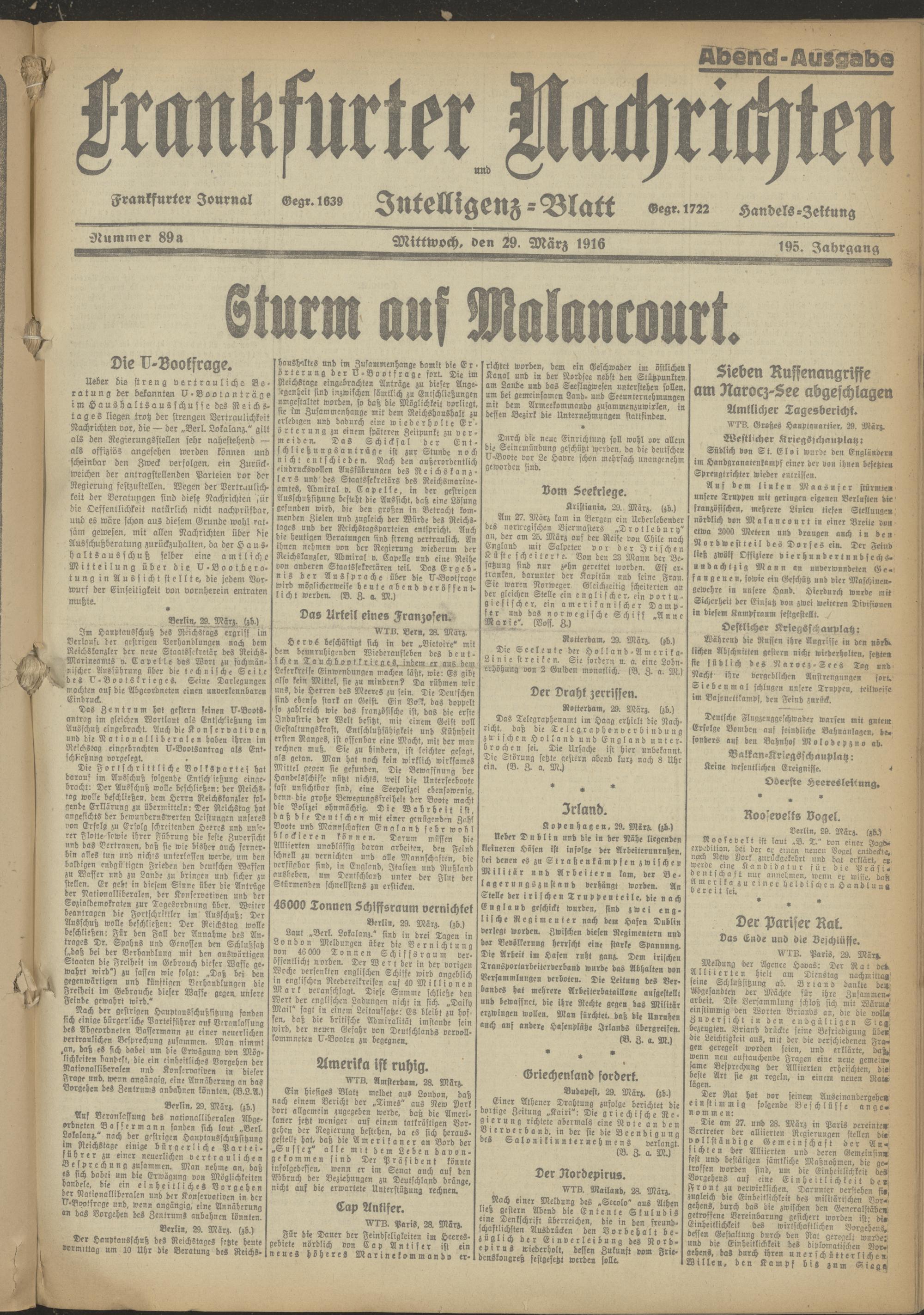29.03.1916 Abend-Ausgabe = Nr. 89 a