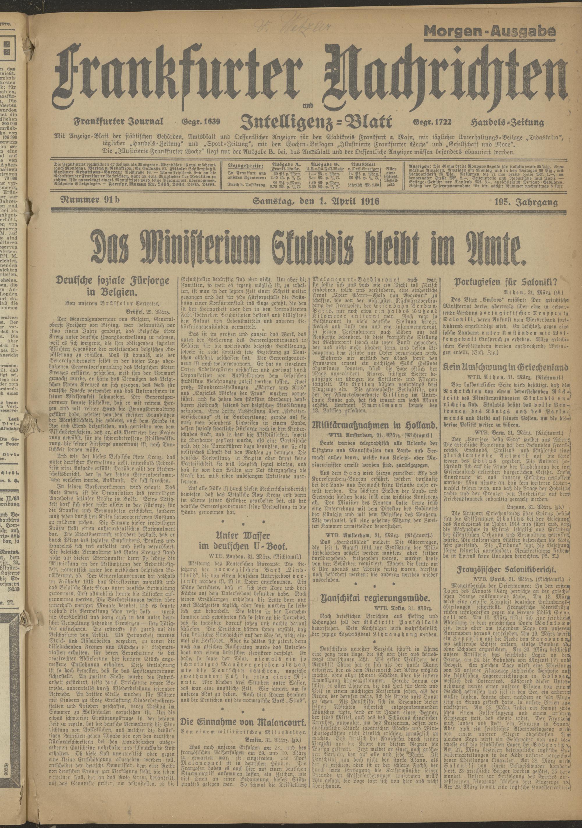 01.04.1916 Morgen-Ausgabe = Nr. 91 b