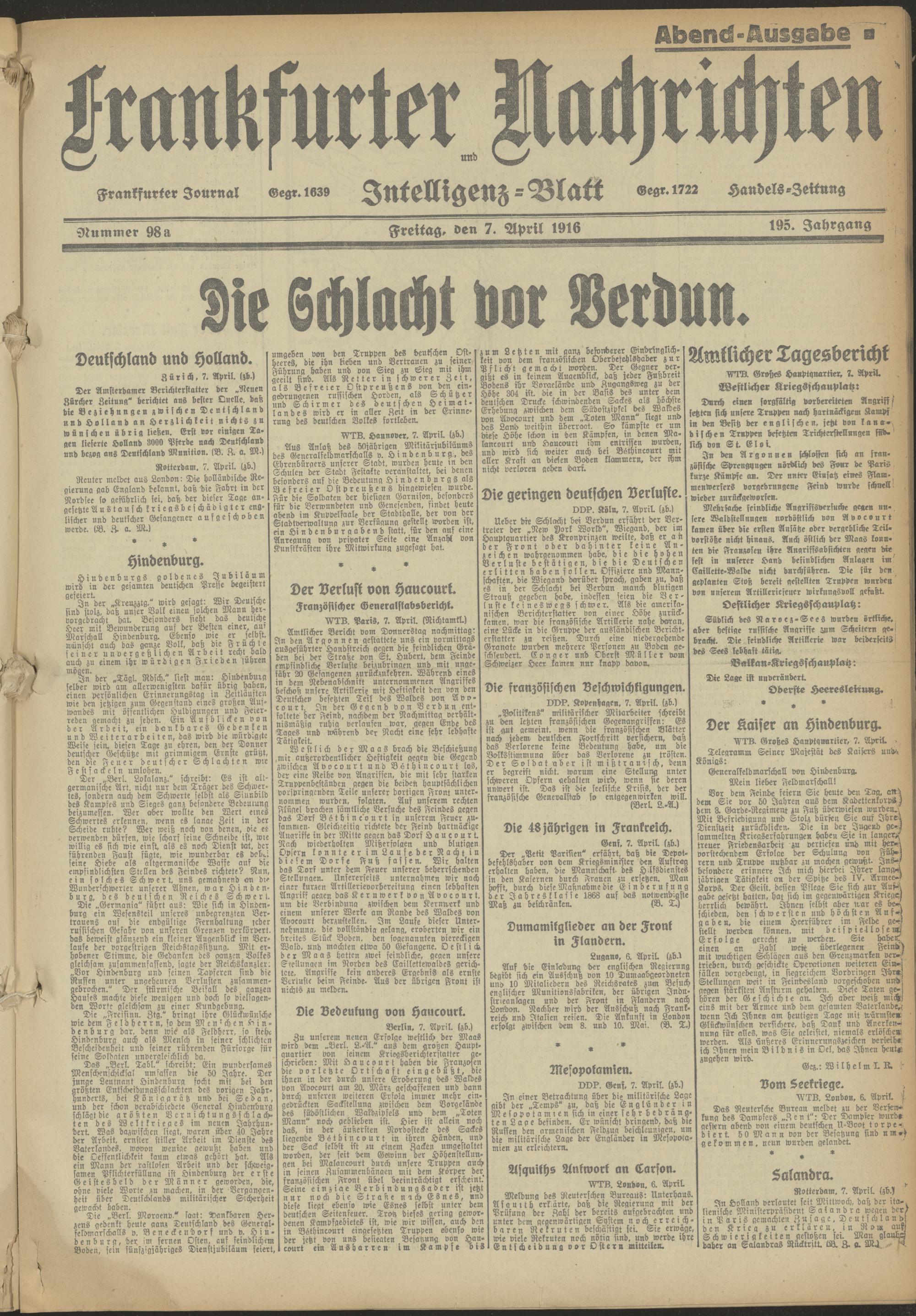 07.04.1916 Abend-Ausgabe = Nr. 98 a