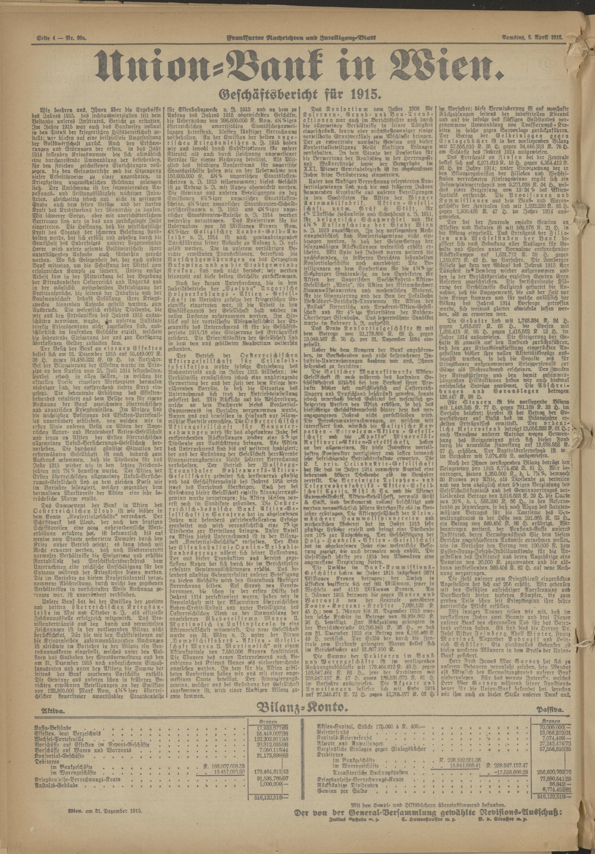 08.04.1916 Abend-Ausgabe = Nr. 99 a