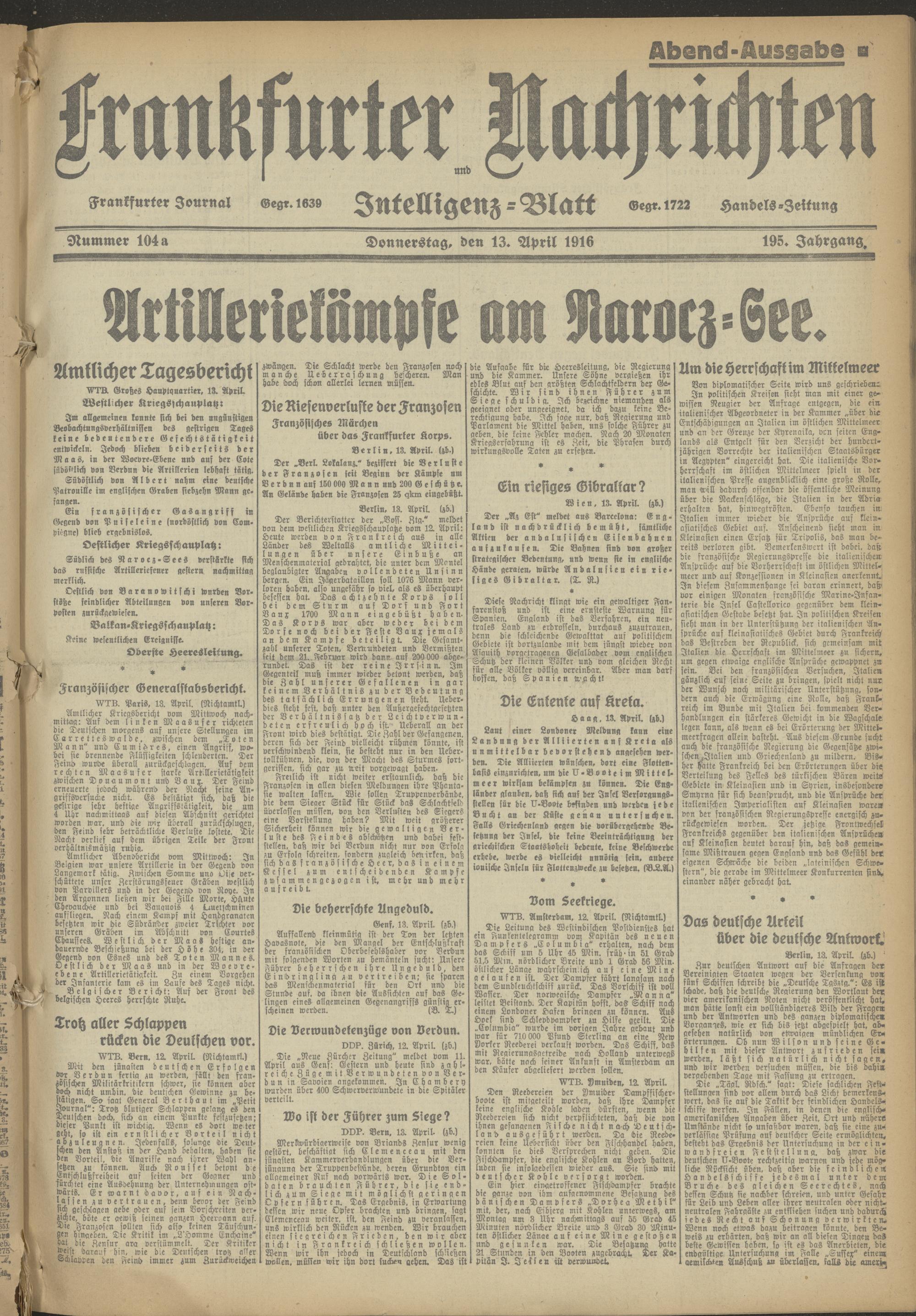 13.04.1916 Abend-Ausgabe = Nr. 104 a