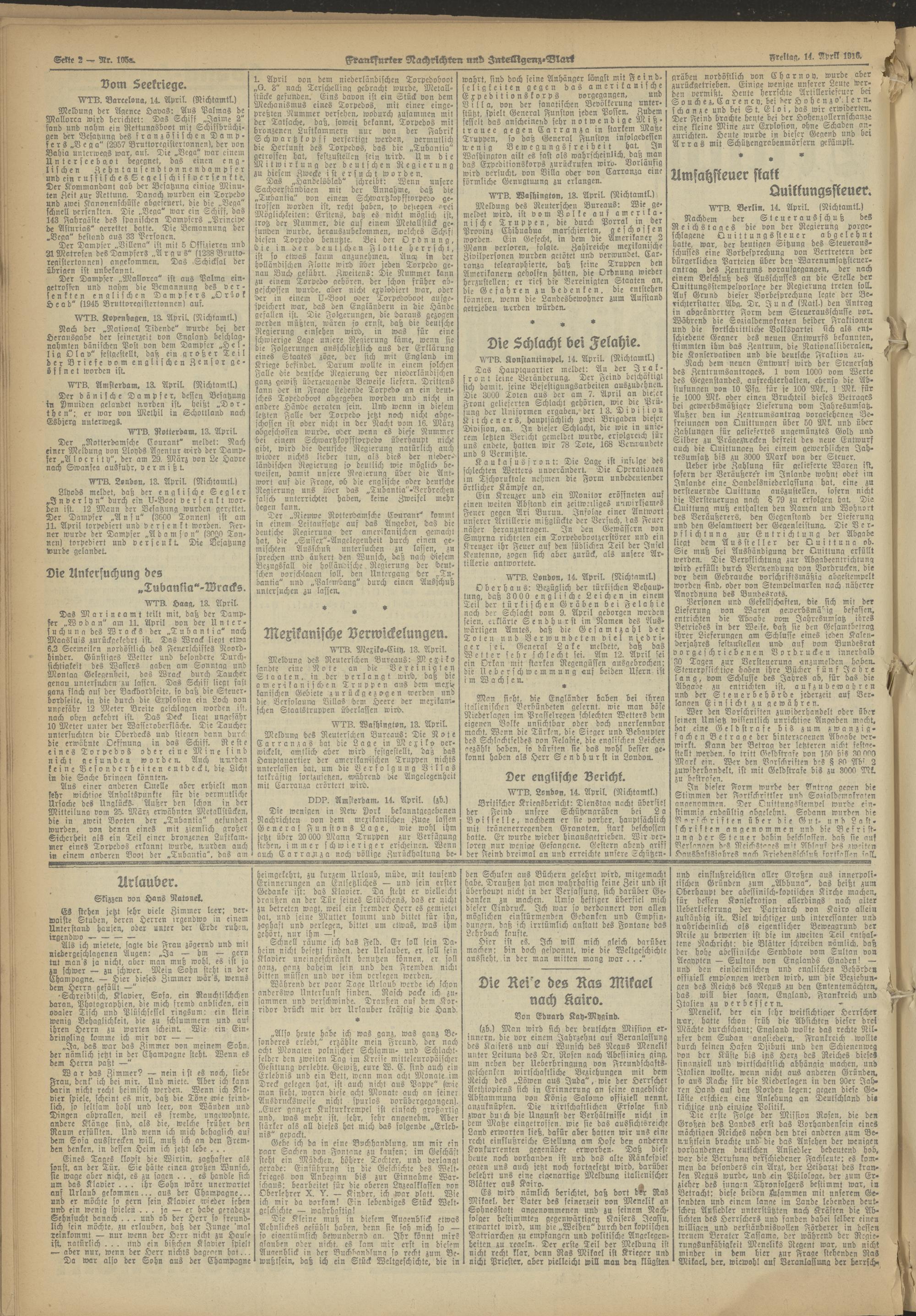 14.04.1916 Abend-Ausgabe = Nr. 105 a