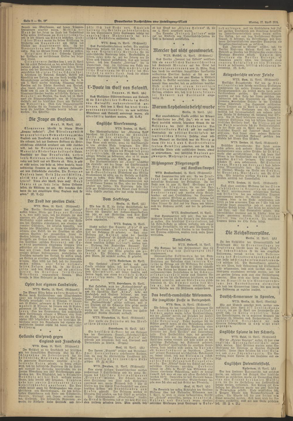 Frankfurter Nachrichten und Intelligenzblatt. 1914-1918