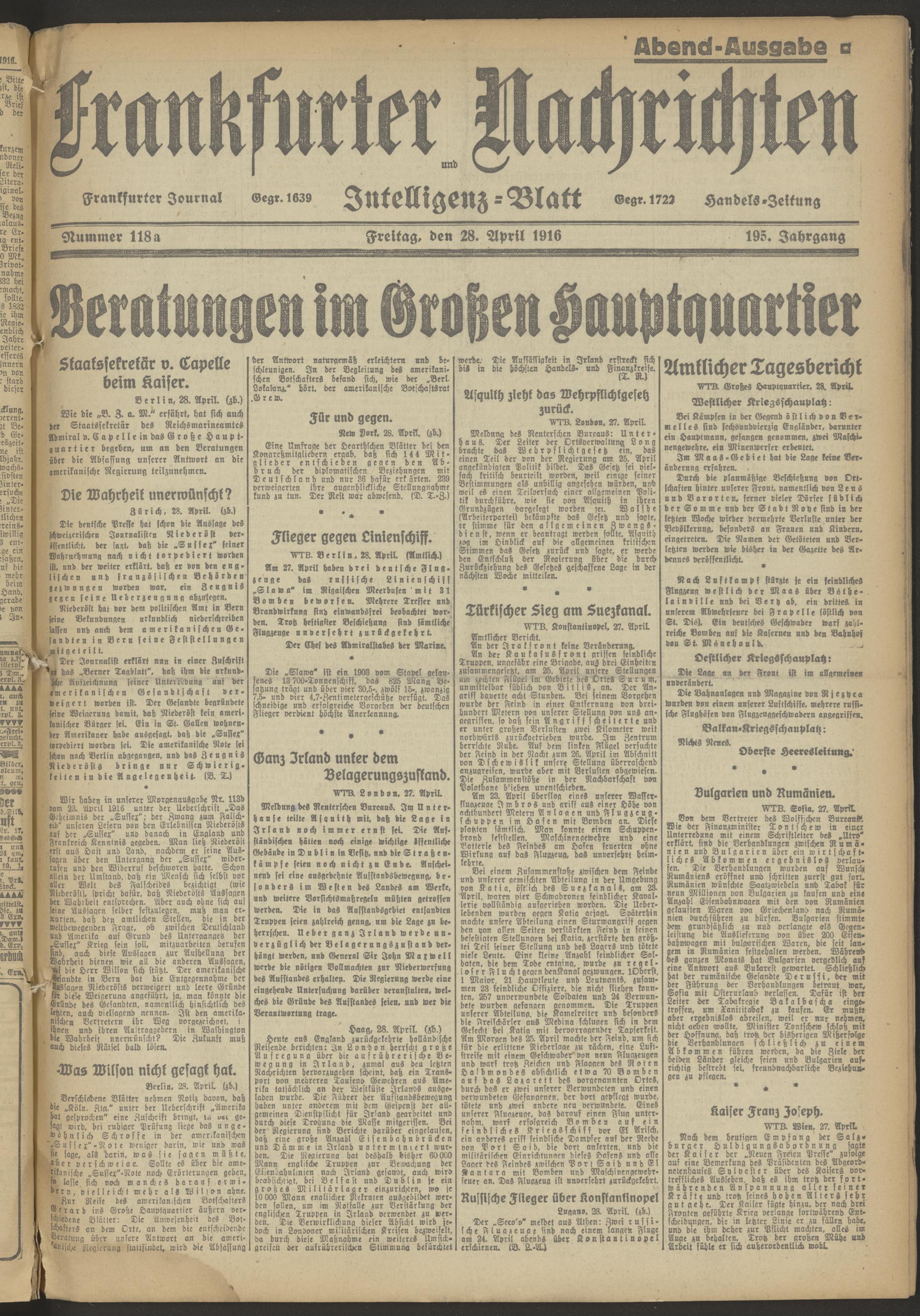 28.04.1916 Abend-Ausgabe = Nr. 118 a