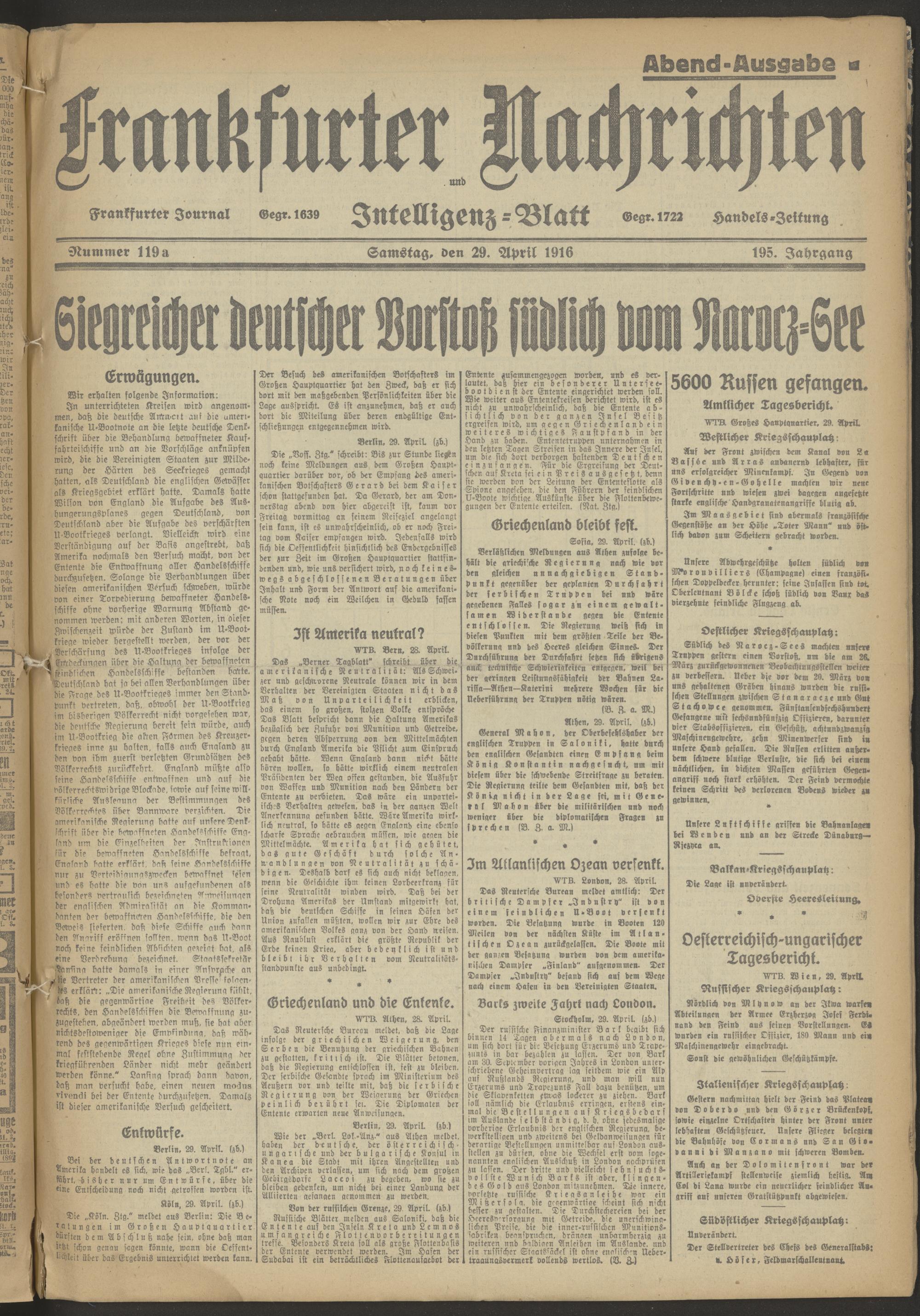29.04.1916 Abend-Ausgabe = Nr. 119 a
