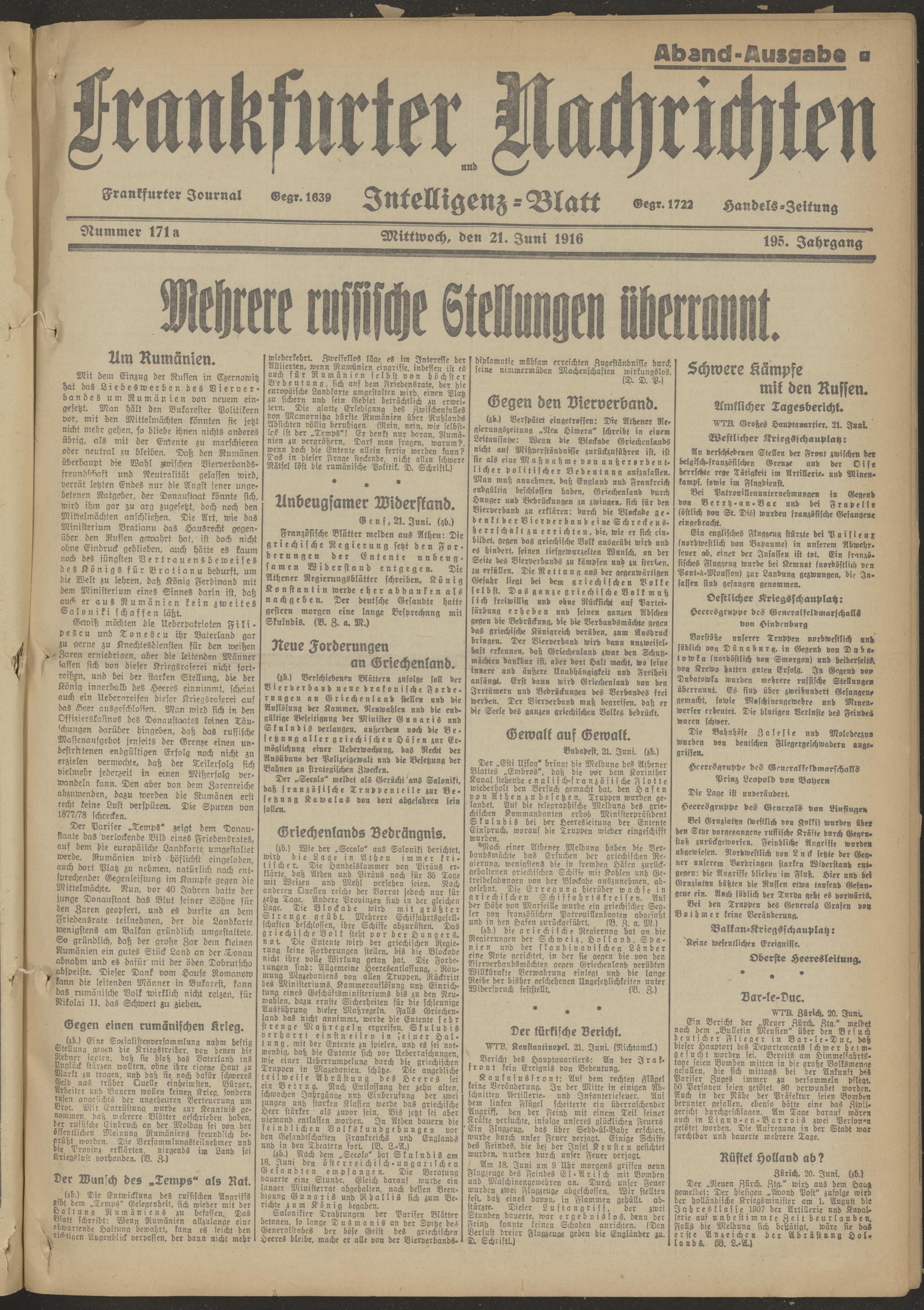 Frankfurter Nachrichten und Intelligenzblatt. 1914-1918