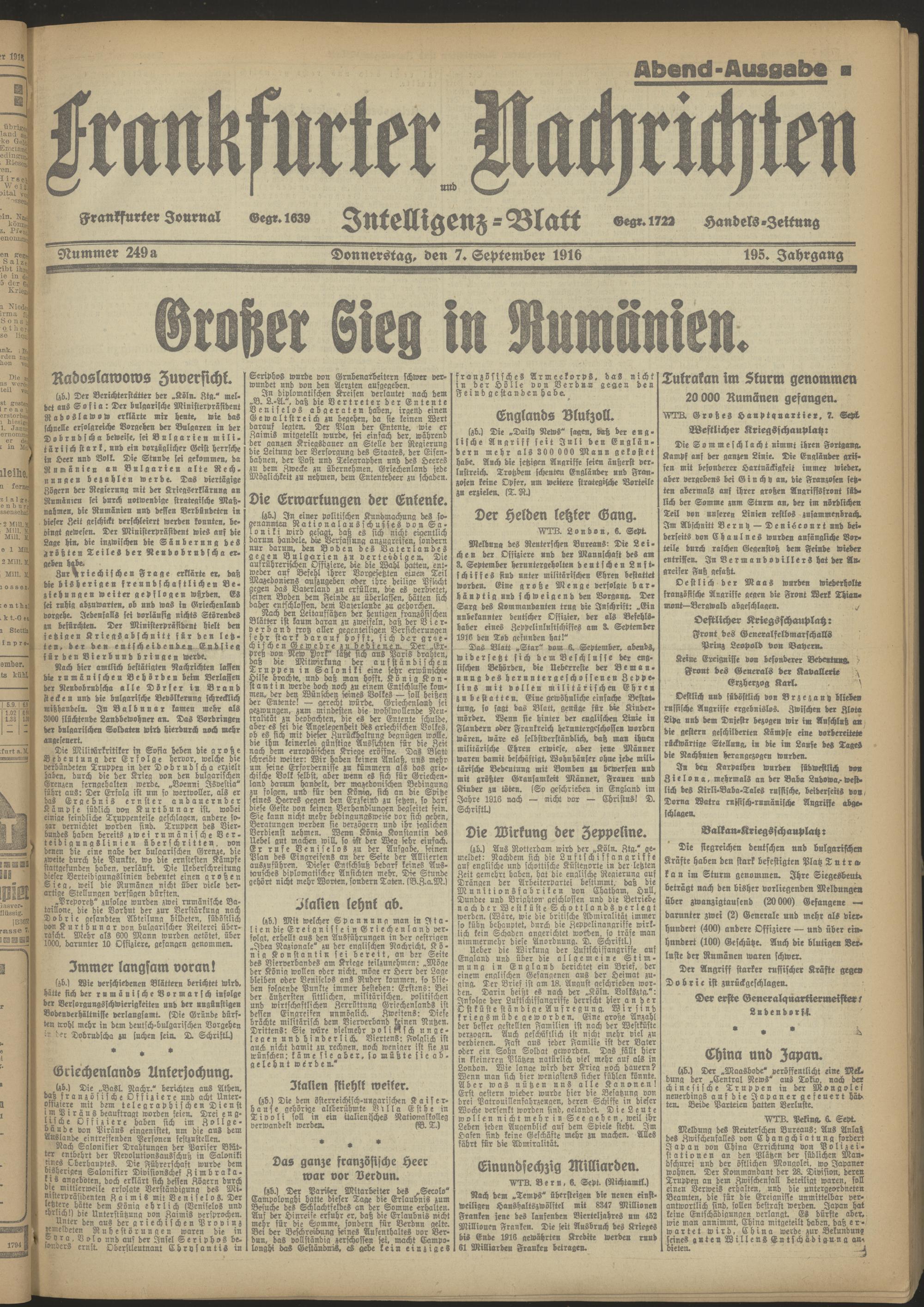 07.09.1916 Abend-Ausgabe = Nr. 249 a