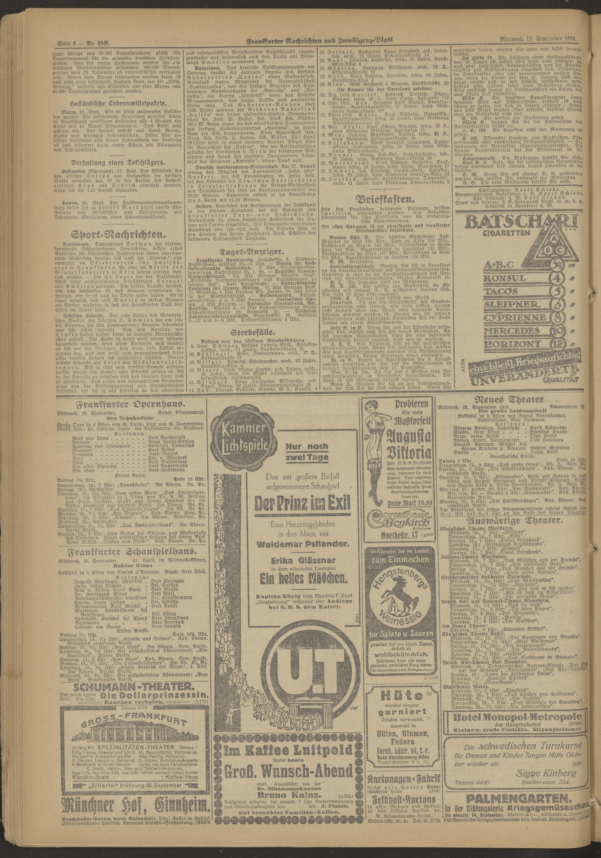 13.09.1916 Morgen-Ausgabe = Nr. 254 b