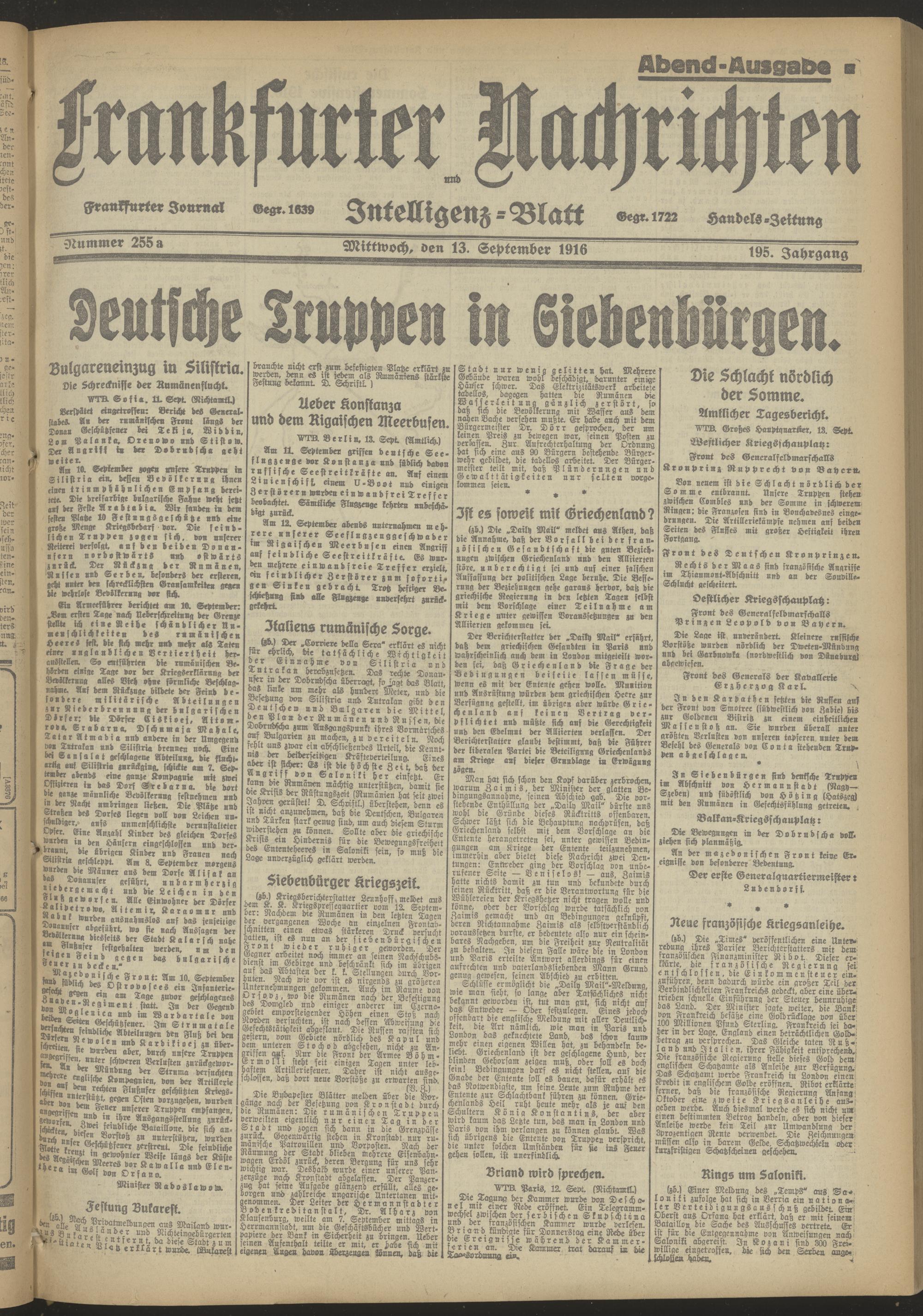 13.09.1916 Abend-Ausgabe = Nr. 255 a