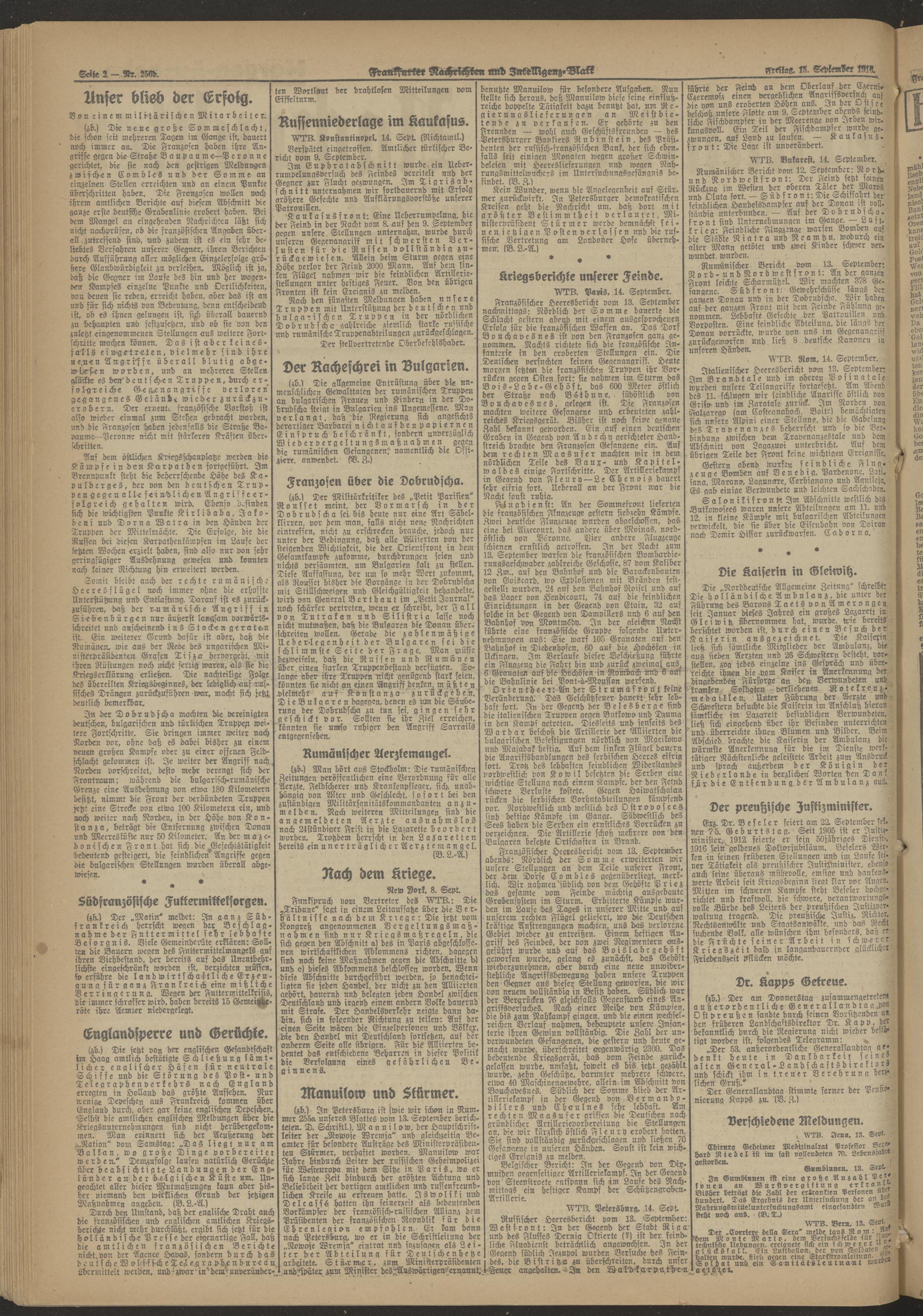 15.09.1916 Morgen-Ausgabe = Nr. 256 b