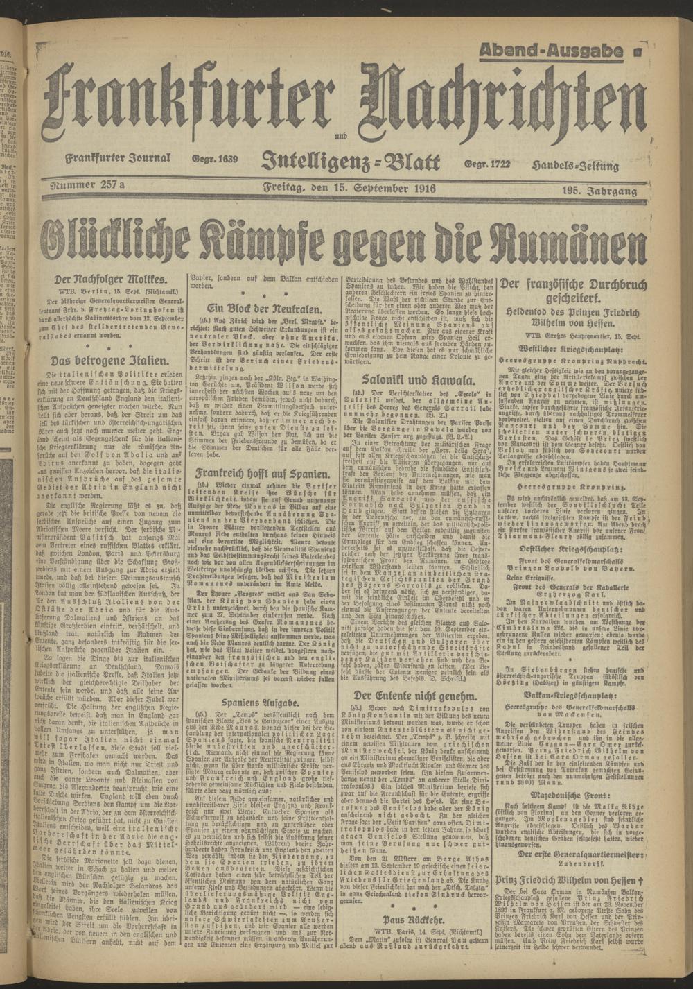 15.09.1916 Abend-Ausgabe = Nr. 257 a