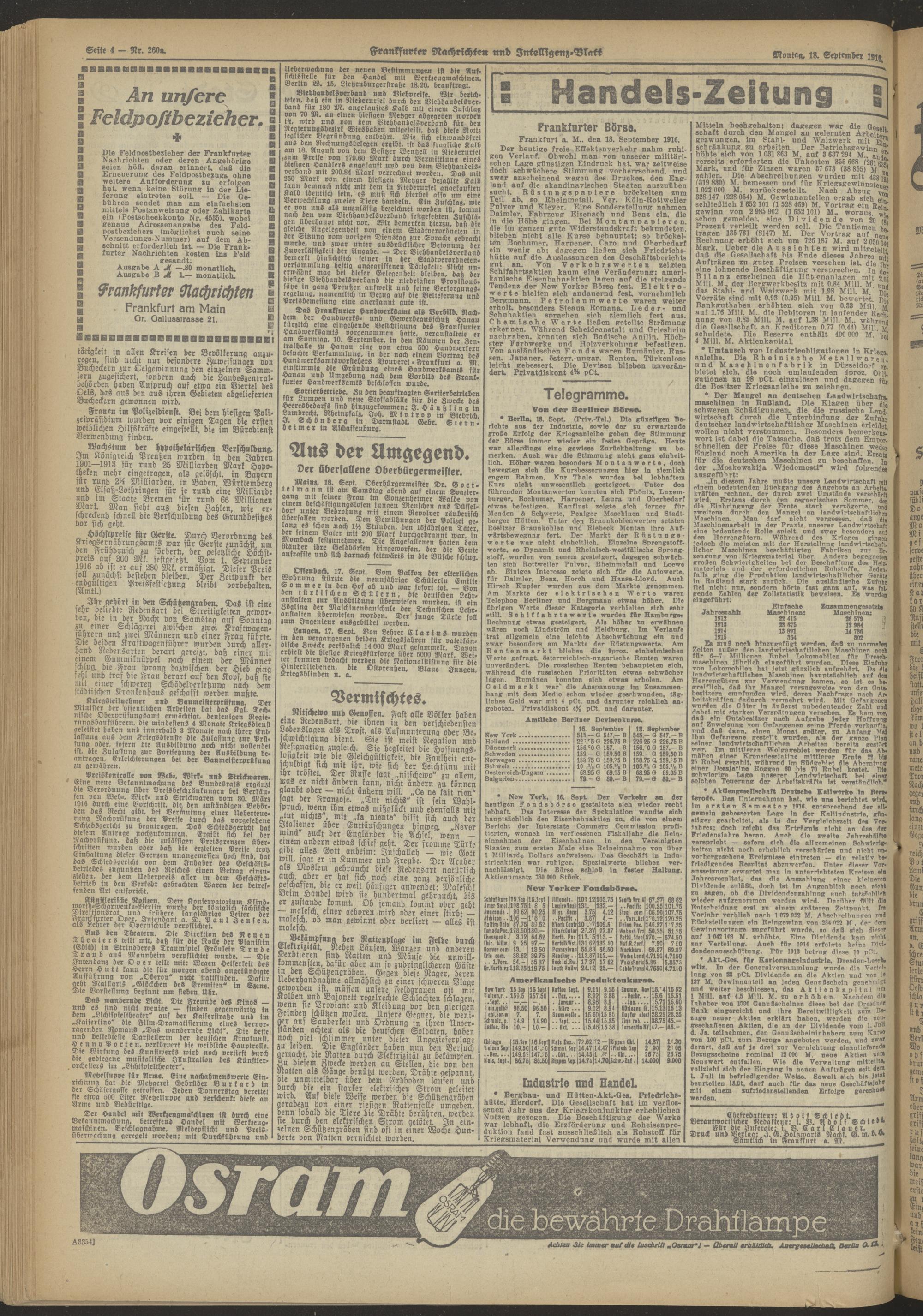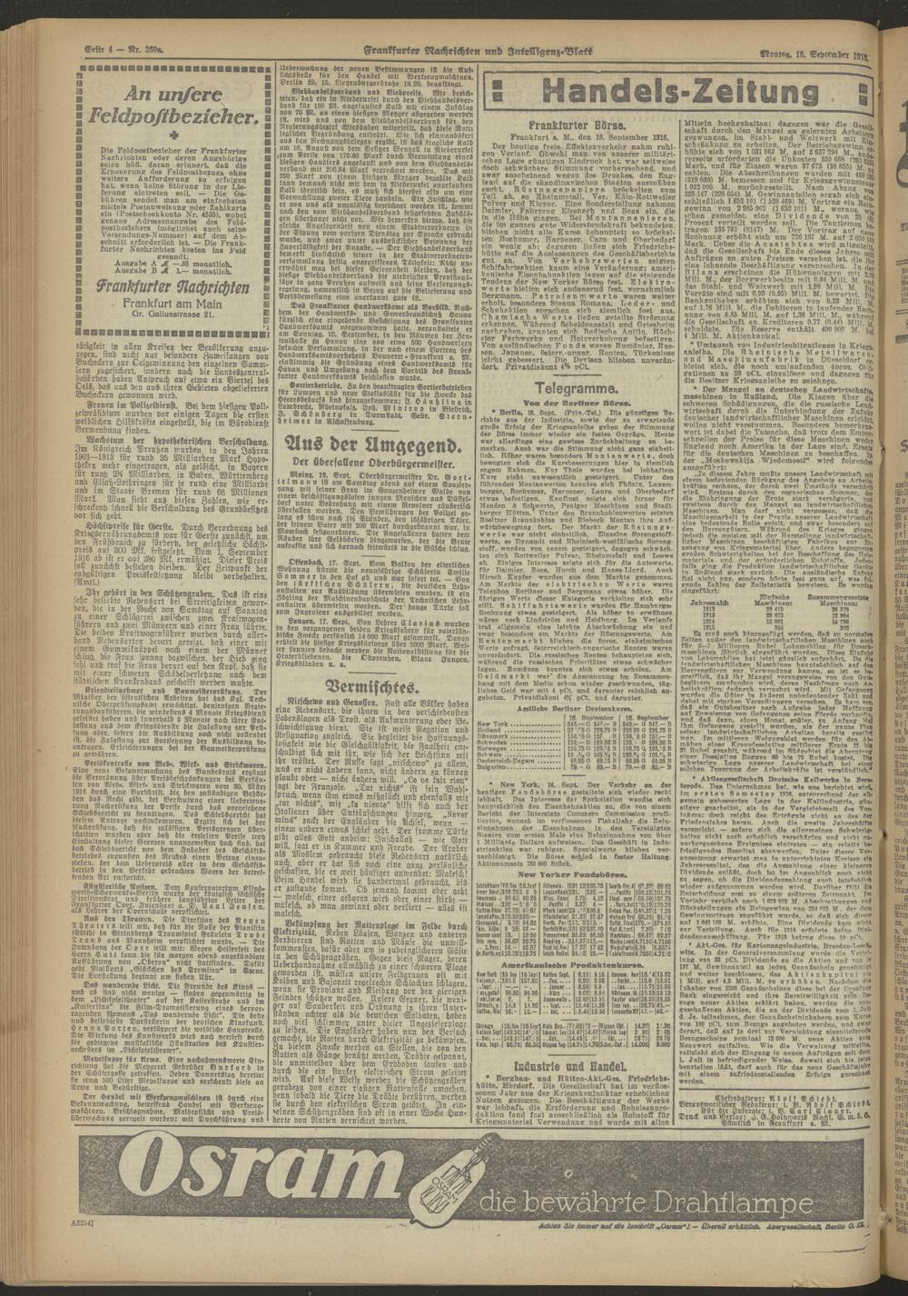 18.09.1916 Abend-Ausgabe = Nr. 260 a