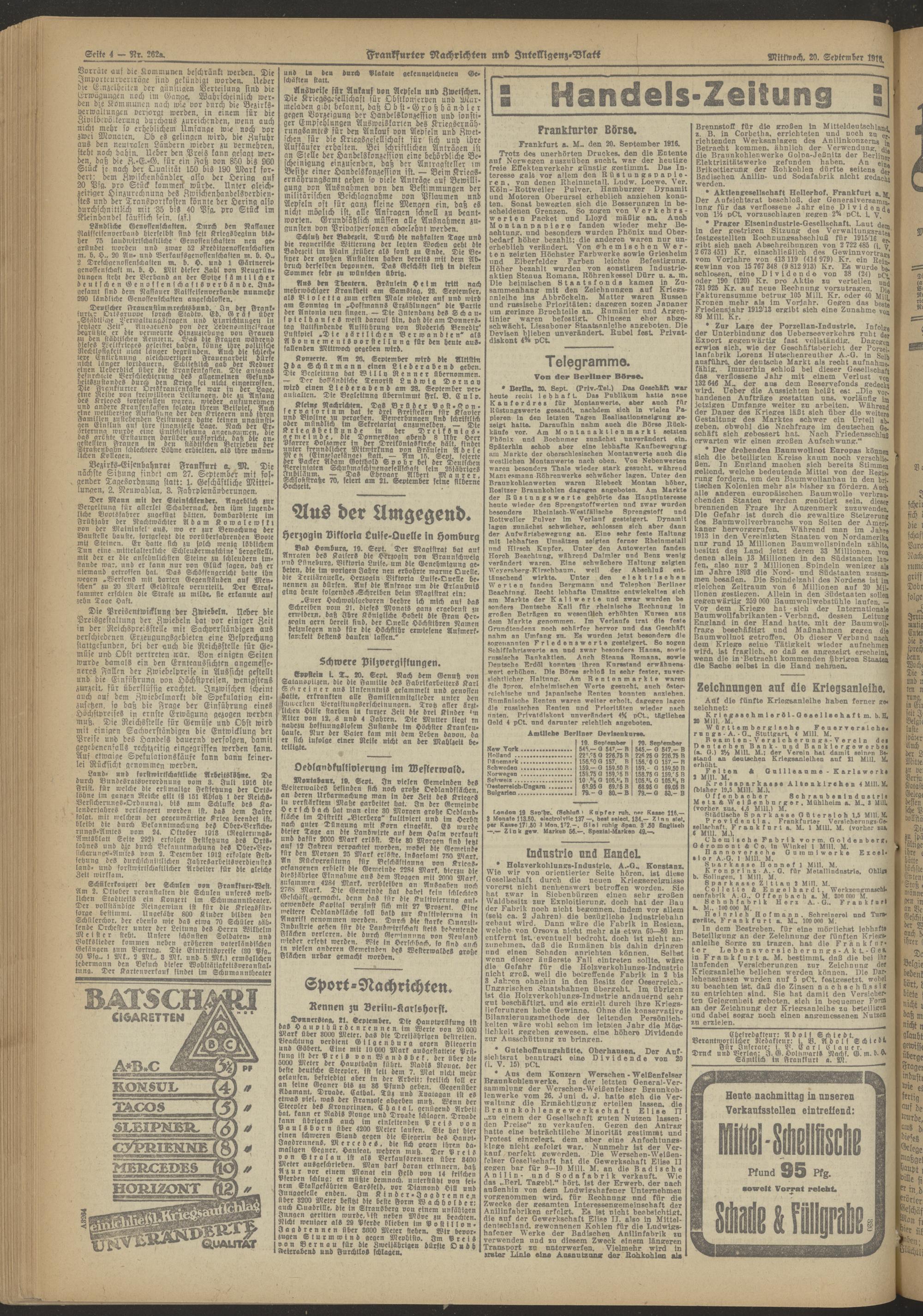 20.09.1916 Abend-Ausgabe = Nr. 262 a