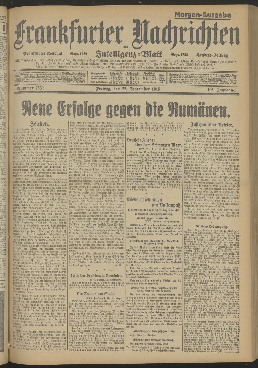 22.09.1916 Morgen-Ausgabe = Nr. 263 b
