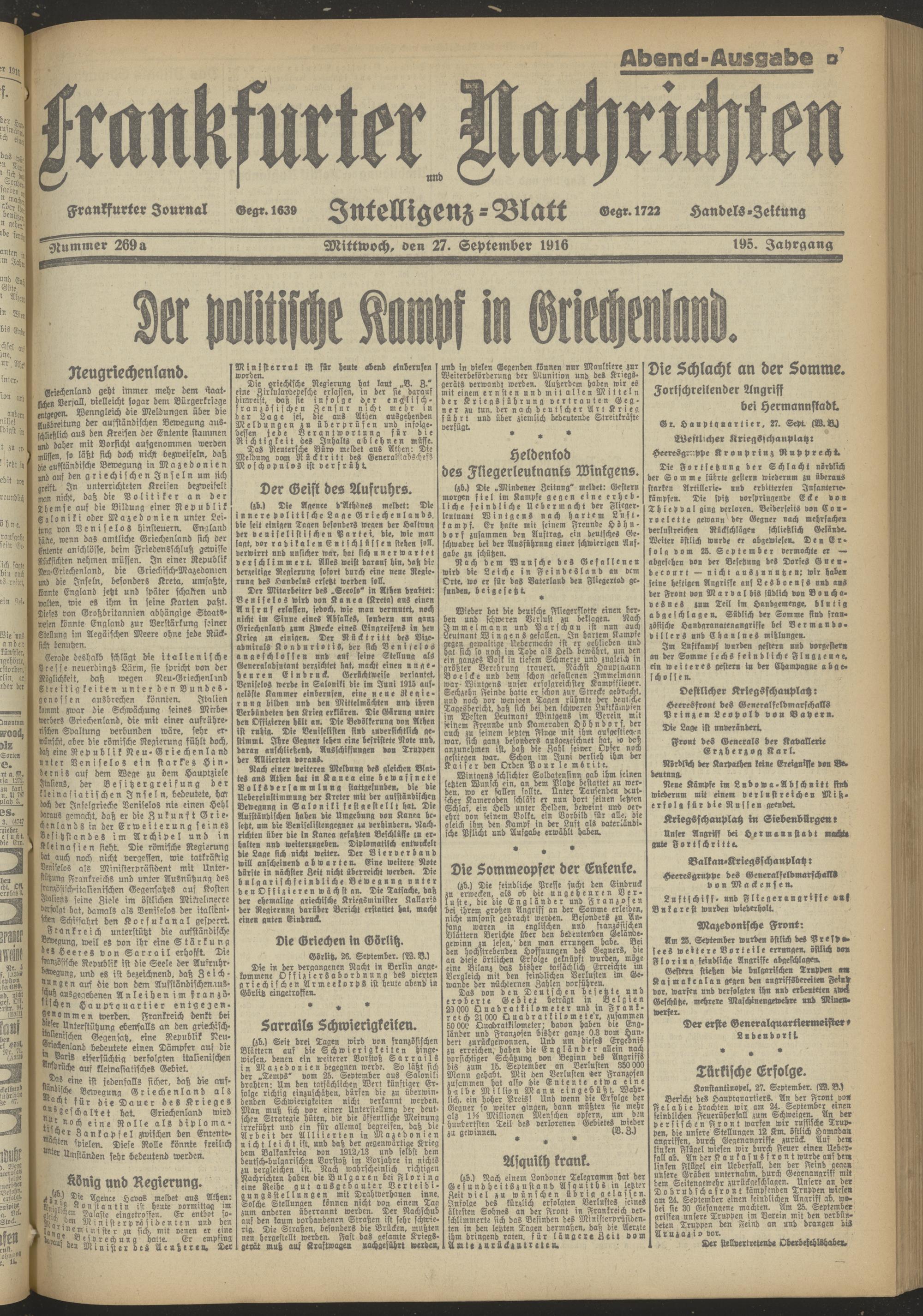 27.09.1916 Abend-Ausgabe = Nr. 269 a