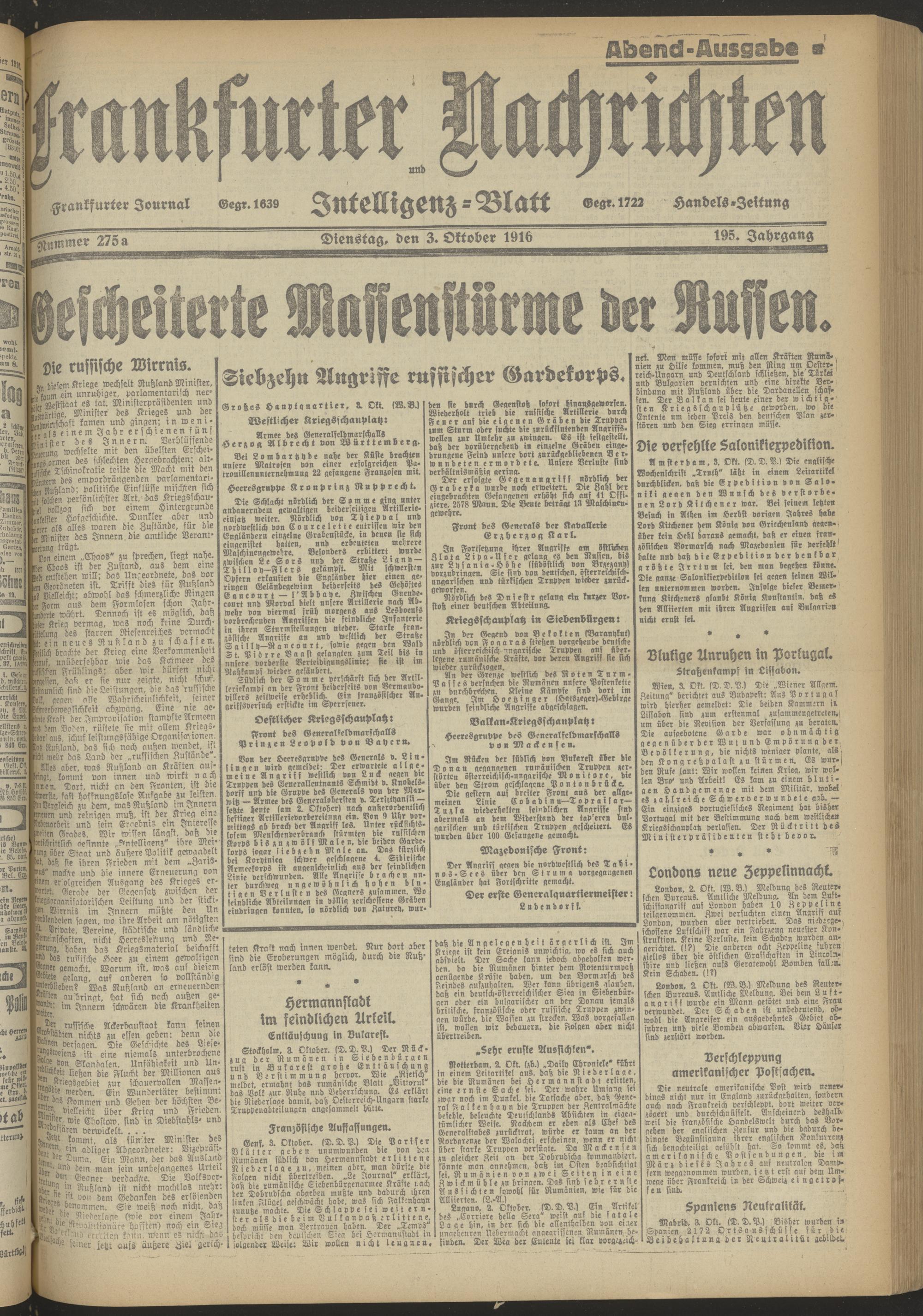 03.10.1916 Abend-Ausgabe = Nr. 275 a