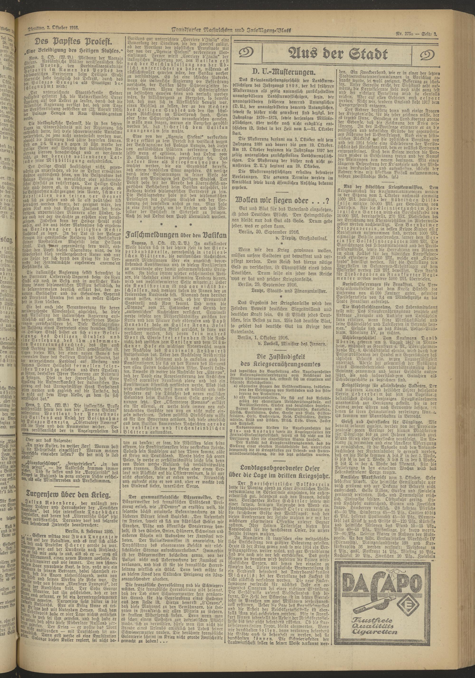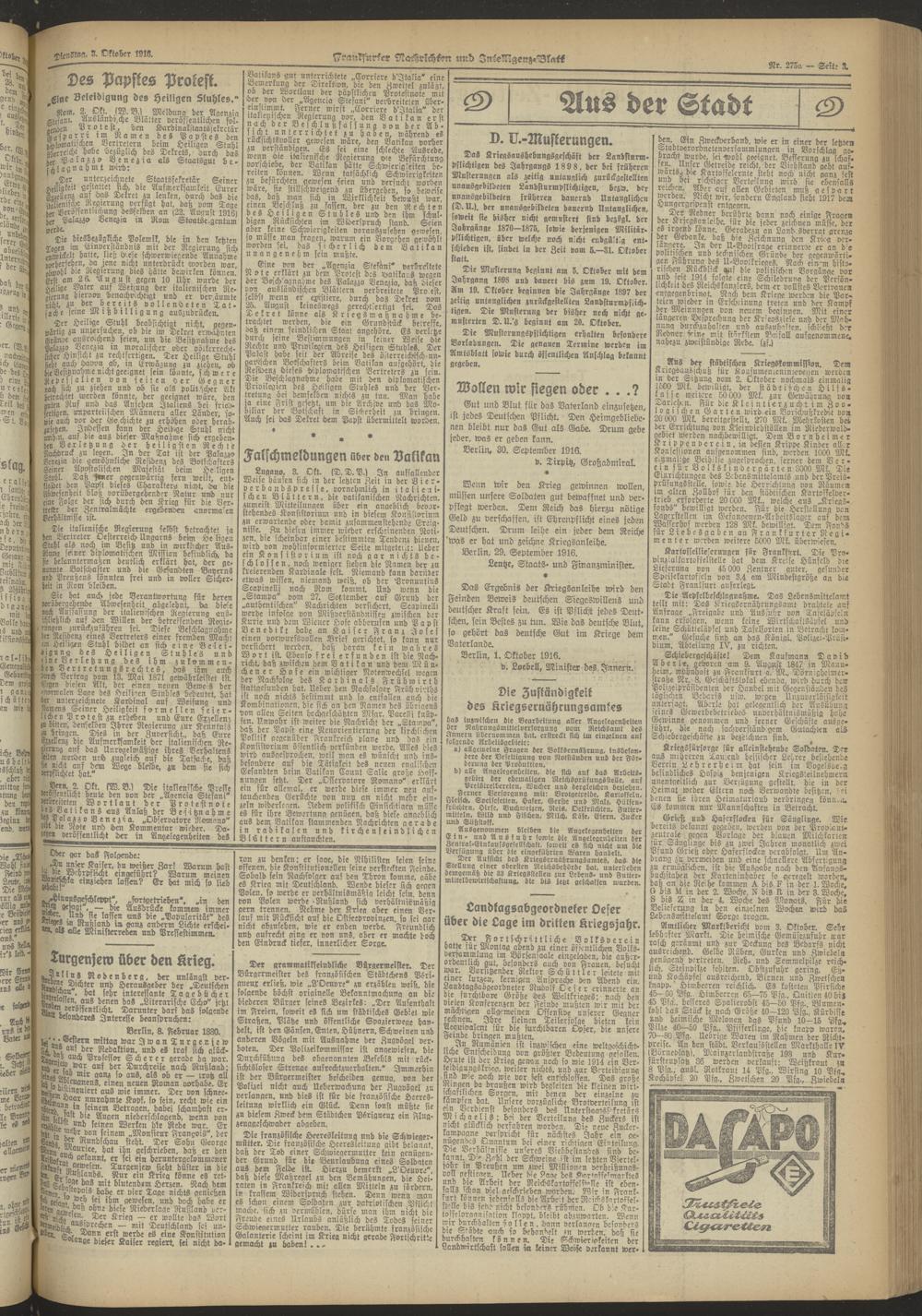 03.10.1916 Abend-Ausgabe = Nr. 275 a