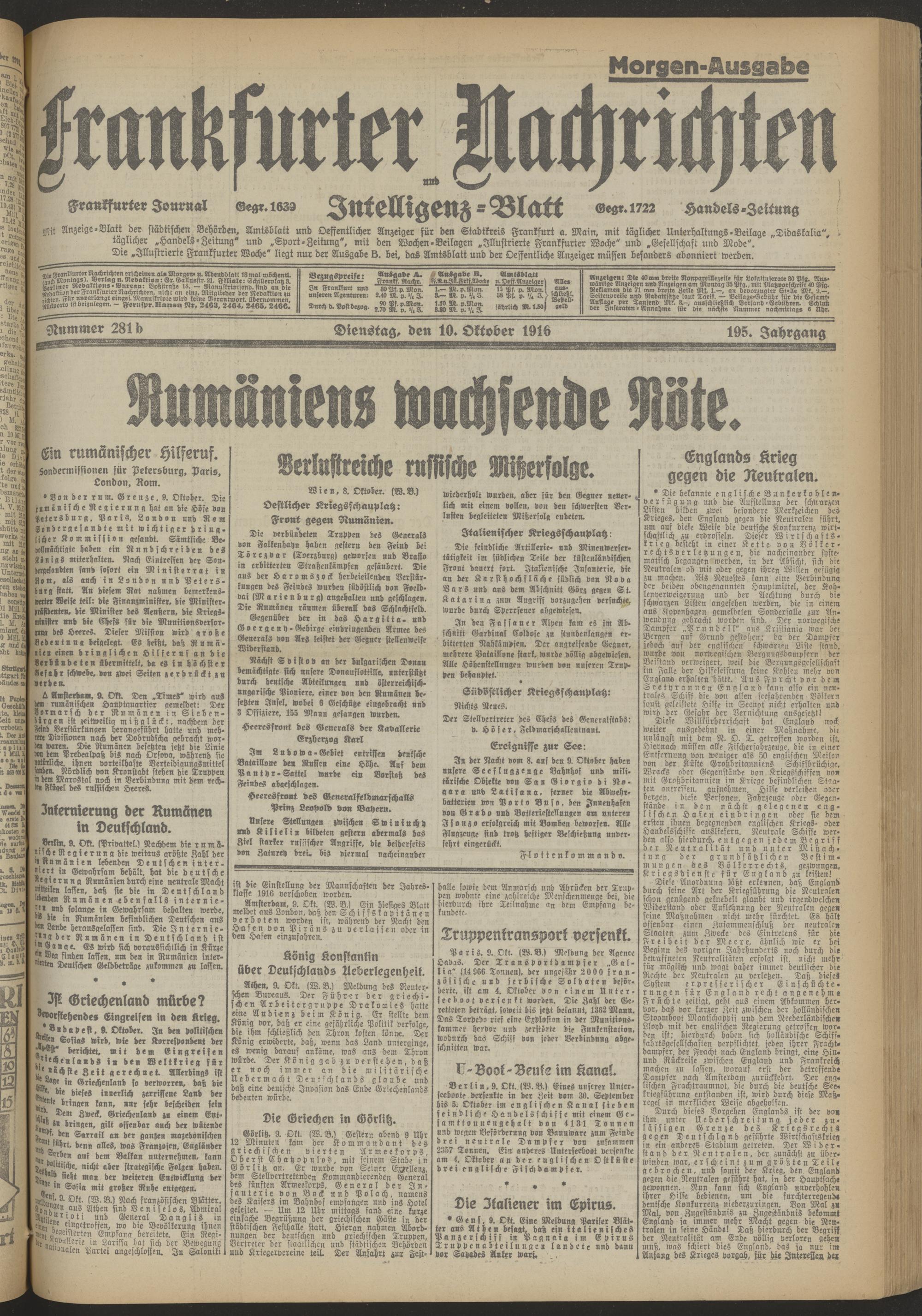 10.10.1916 Morgen-Ausgabe = Nr. 281 b