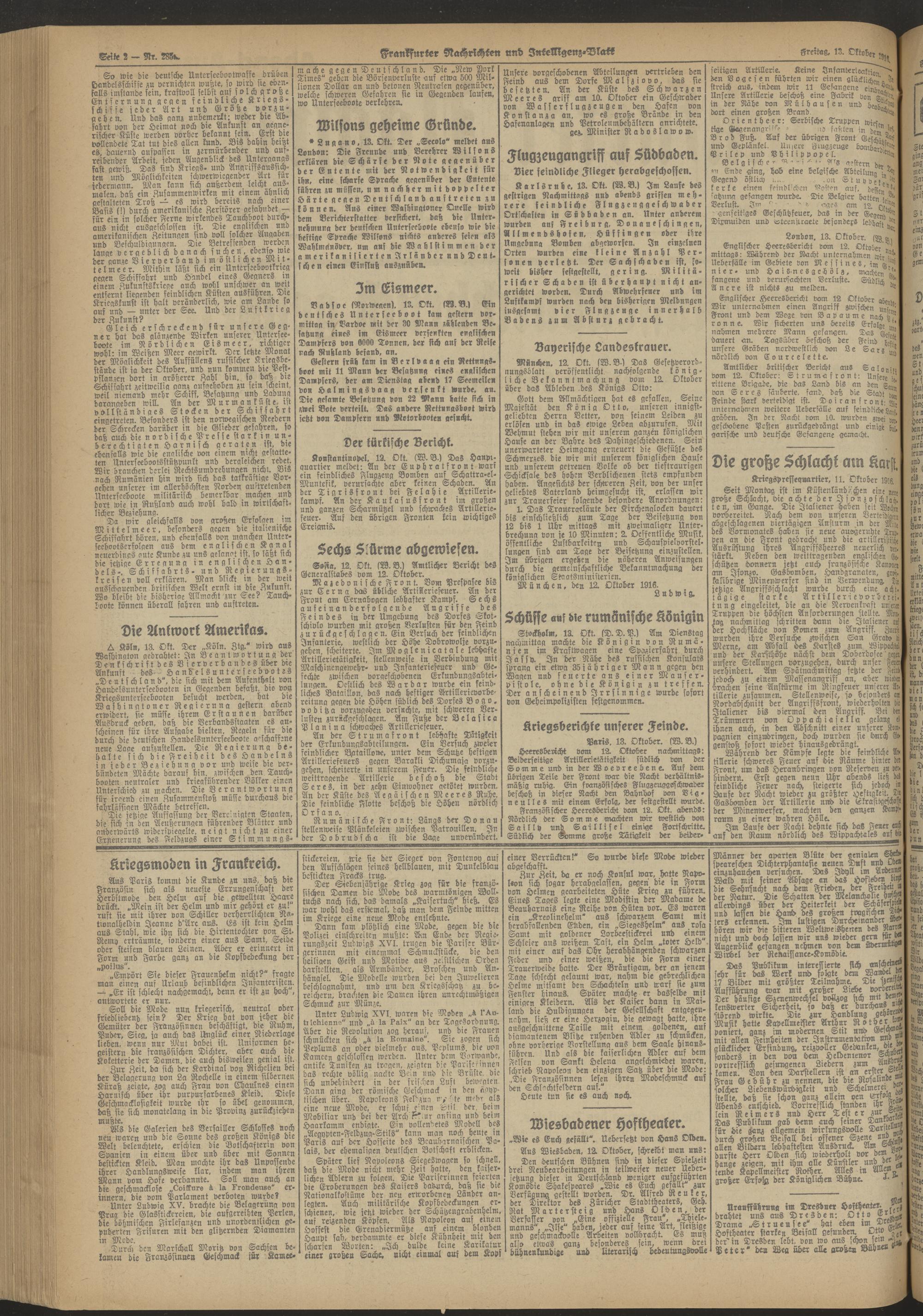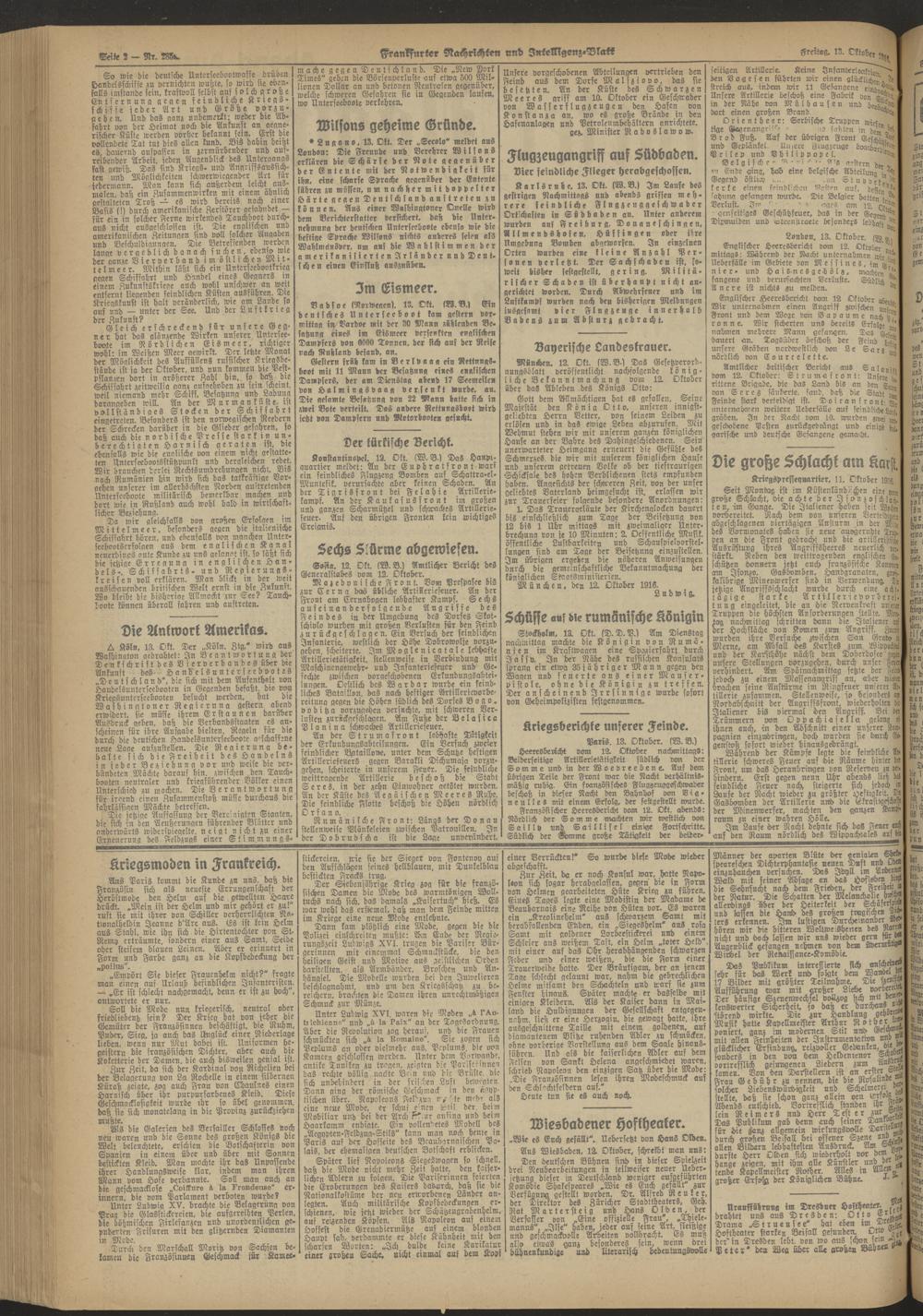 13.10.1916 Abend-Ausgabe = Nr. 285 a