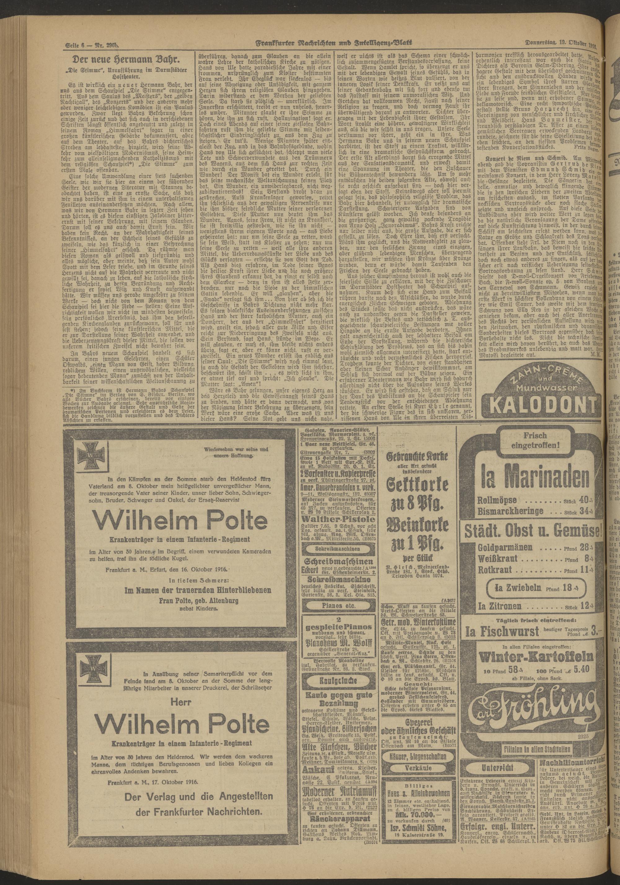 19.10.1916 Morgen-Ausgabe = Nr. 290 b