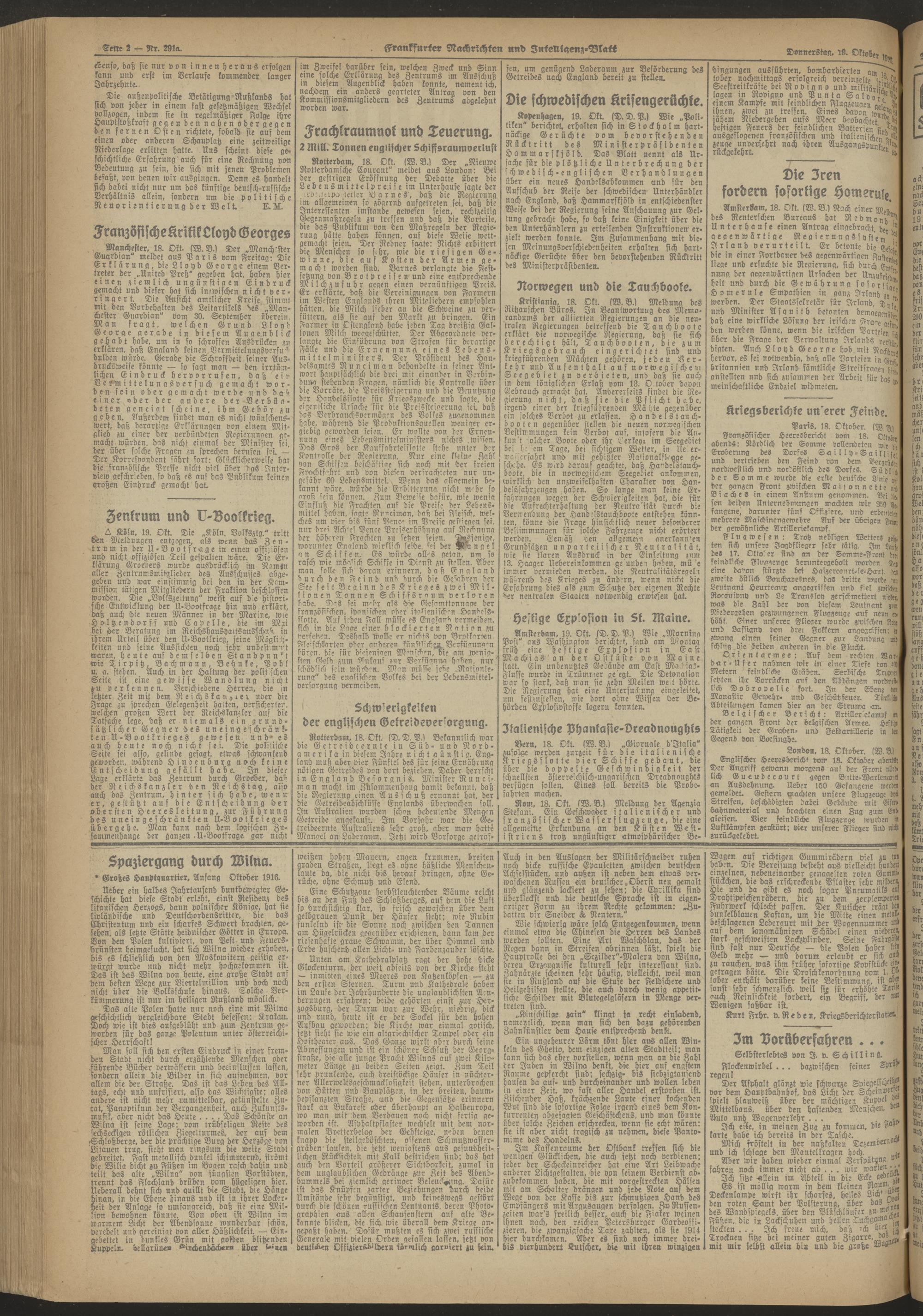19.10.1916 Abend-Ausgabe = Nr. 291 a