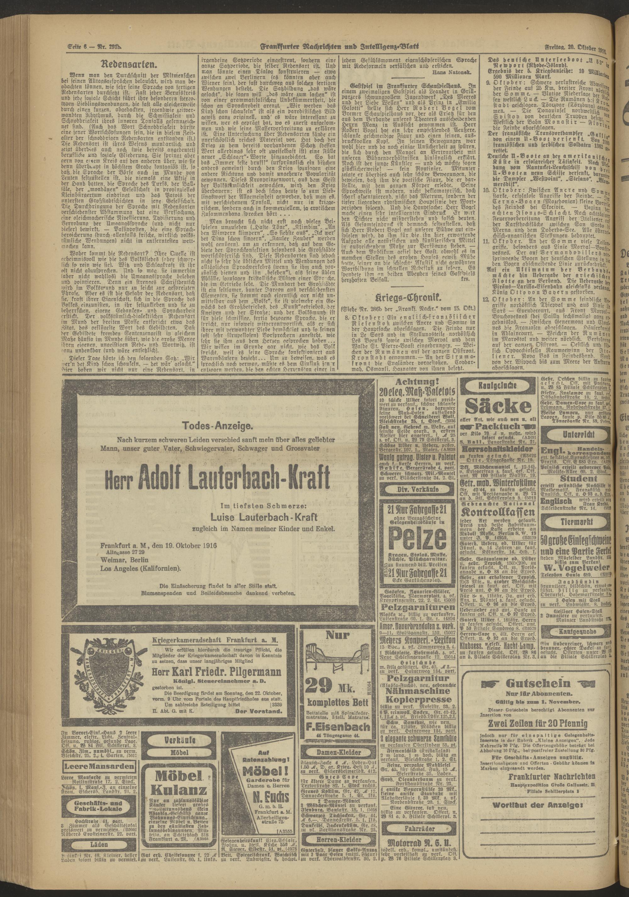 20.10.1916 Morgen-Ausgabe = Nr. 291 b