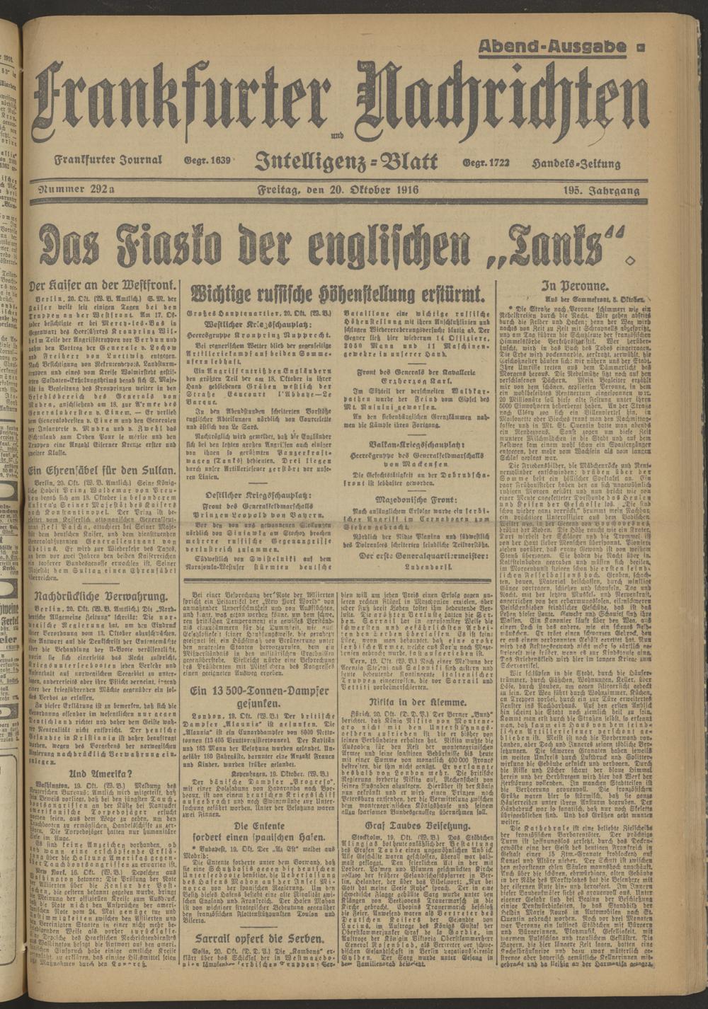 20.10.1916 Abend-Ausgabe = Nr. 292 a